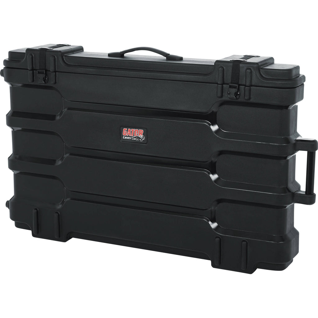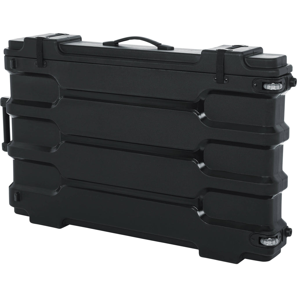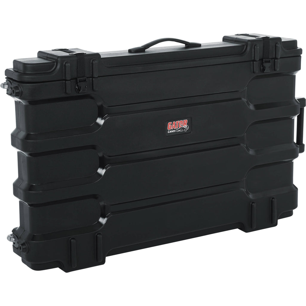 The Gator Cases Roto-Molded LCD/LED Screen Case is designed to house and transport monitors measuring between 40 and 45". It's constructed out of rotationally molded polyethylene, ensuring your monitor remains protected. When you open the case's hinged lid, you'll find a foam-padded interior for keeping your screen secure. The case also features 1" side-release, surface-mounted buckles, and gives you a carry handle, as well as a removable shoulder strap that can be adjusted to your needs. This model also comes with inline wheels and an aluminum tow handle, so you can tilt and roll the case as you would carry-on luggage.