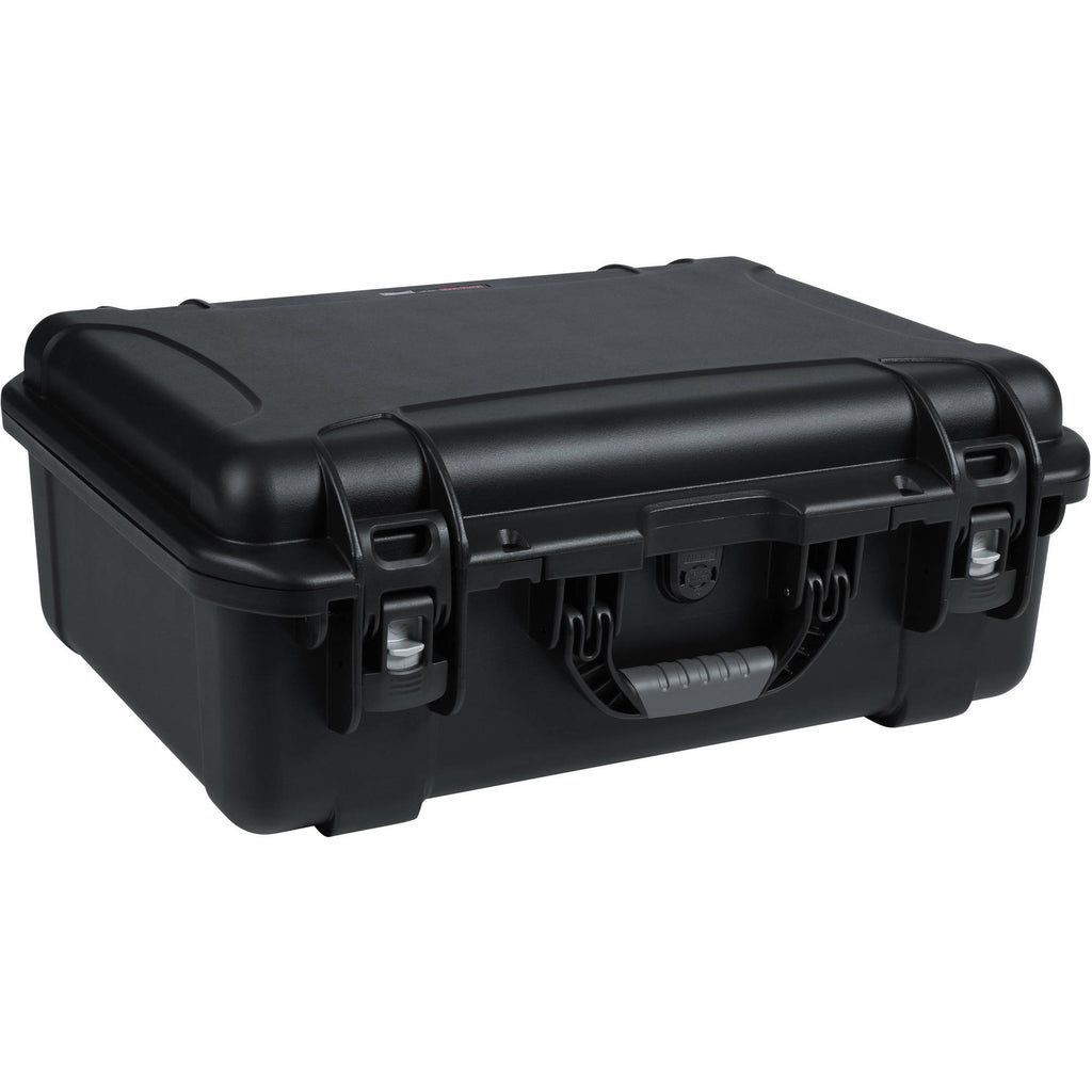 Black waterproof injection molded case with foam insert to accommodate 16 handheld mics and accessories
