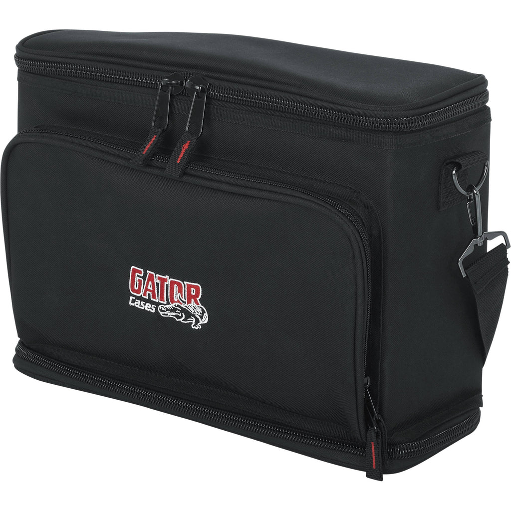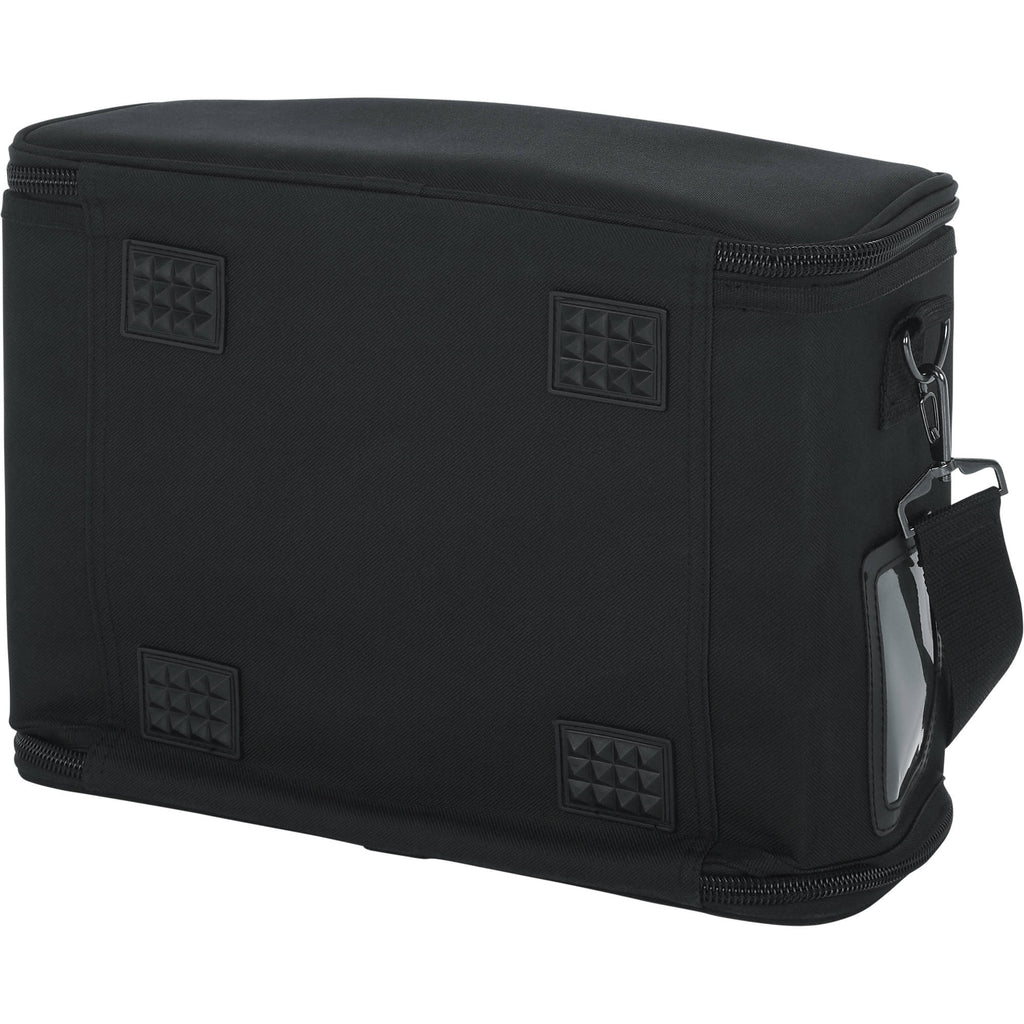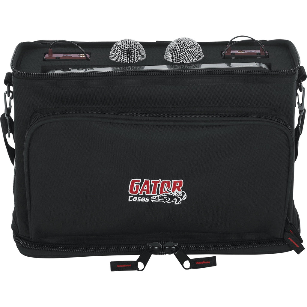 Gator's GM-DUALW dual wireless system bag is designed to carry and use the Shure BLX or similar wireless system without removing from the bag. This Nylon padded bag fits one receiver up to 12.1" x 5.5" x 1.6", two (2) wireless microphones, and two (2) body packs. The reinforced interior includes a secure strap to hold the receiver and compartment on the back to provide full access to rear panel. Rubber feet on the bottom of the GM-DUALW prevent sliding and prolongs the life of the bag. An external pocket and removable pouch in rear of bag provide ample storage. Includes ID card window and removable, adjustable shoulder strap. Gator's GM-DUALW wireless system bag combines lightweight portability and functionality.