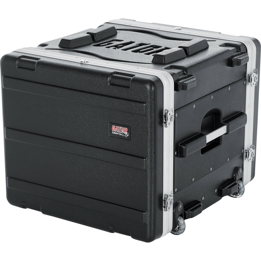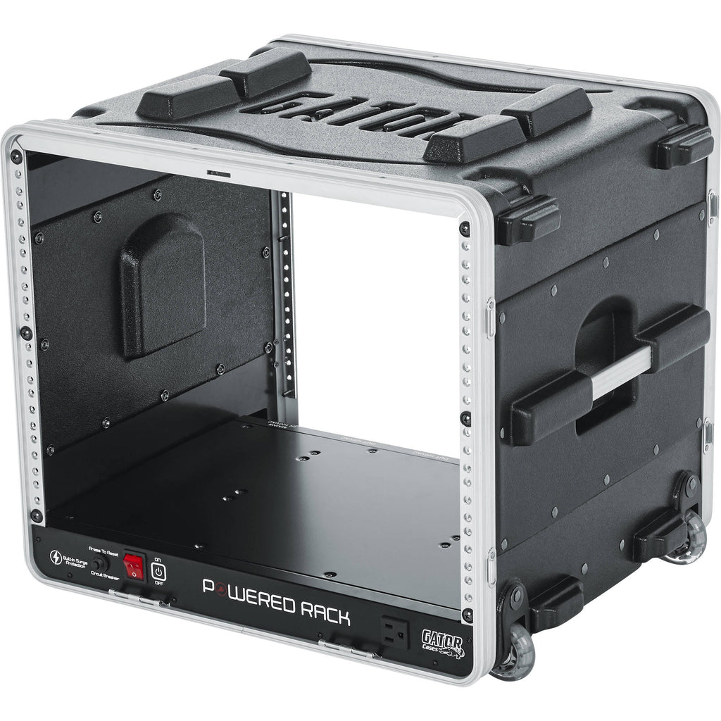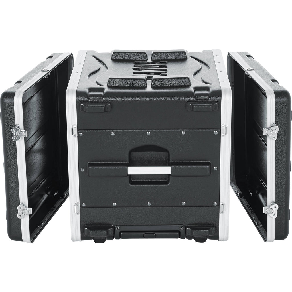 Molded PE Rack Case; Front, Rear Rails; 8U; 19" Deep; Locking, Pull Handle, Recessed Wheels; with Power Supply
