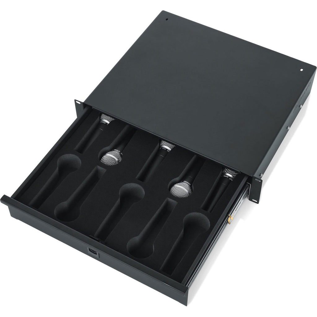Gator Rackworks Rack Drawer; 14.2" Deep; Lockable; Interior has Insert for 10 Microphones; 2U