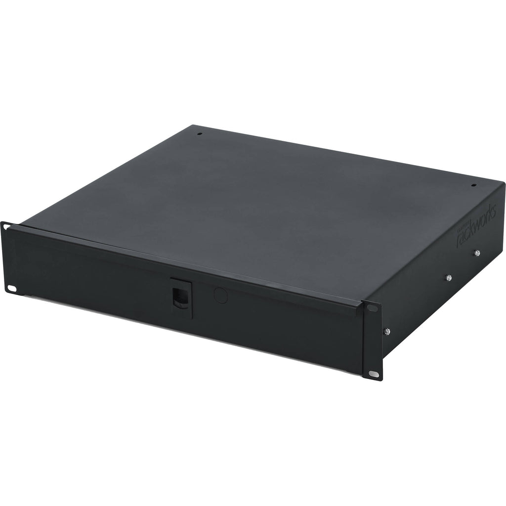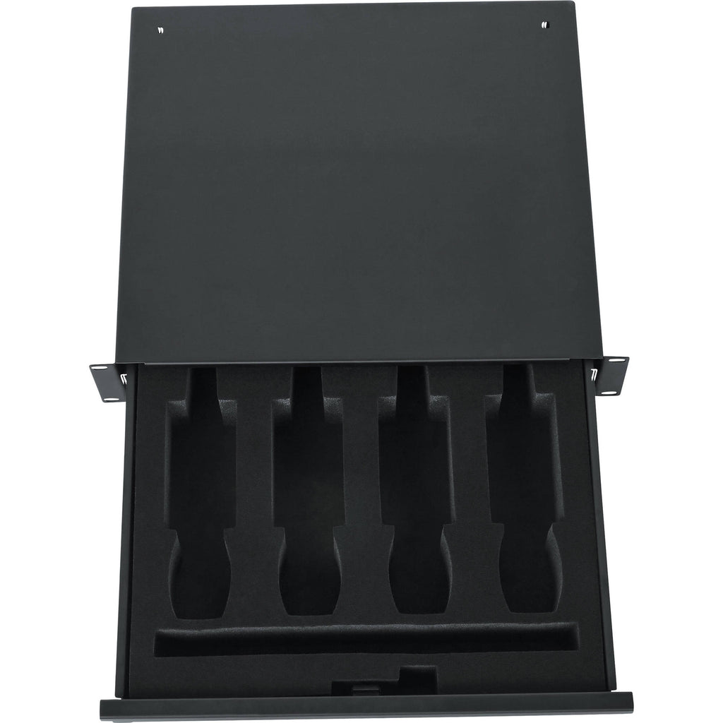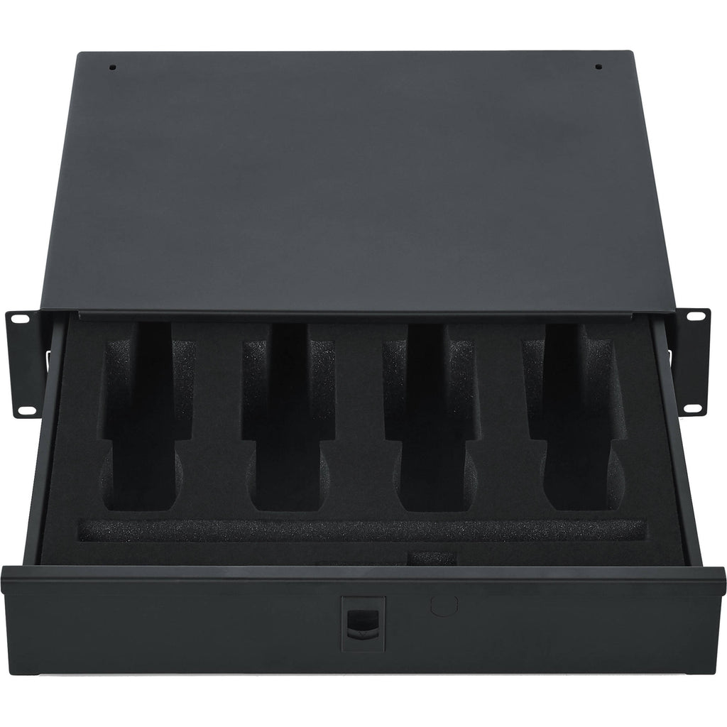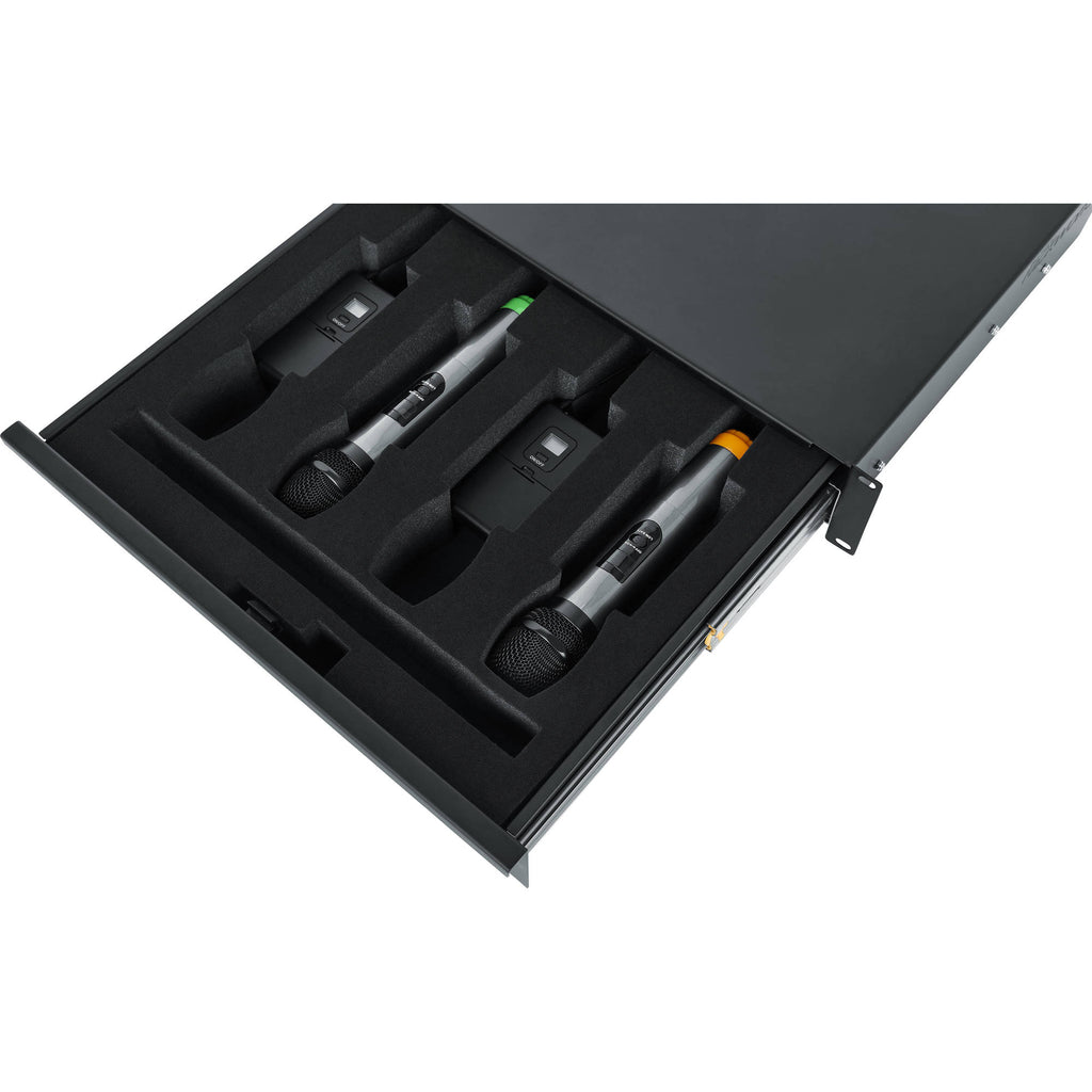 Gator Rackworks Rack Drawer; 14.2" Deep; Lockable; Interior has Insert for 4 Wireless Microphones or Body Packs & Accessories; 2U
