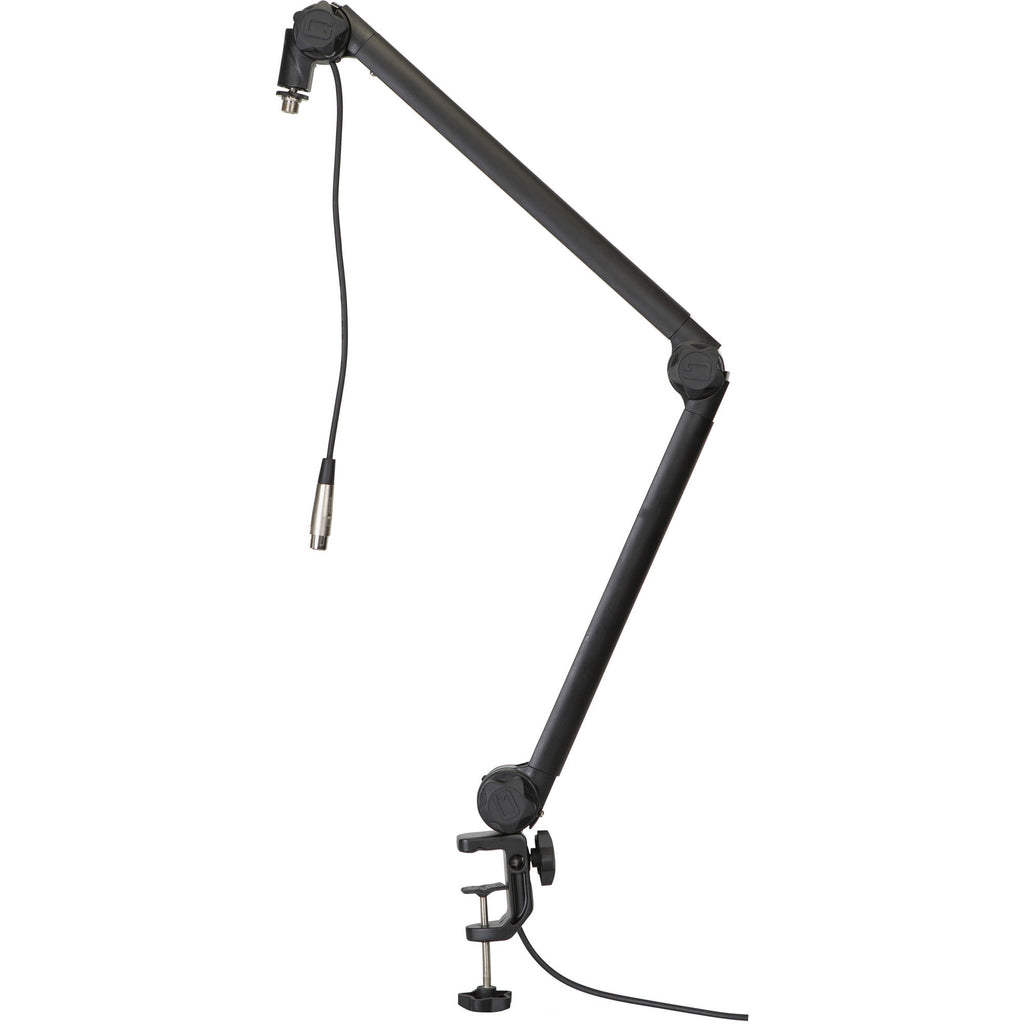 The internally routed 10' XLR cable contributes to a clean appearance and ensures proper connectivity to your mixer or mic preamp. The 16" lower arm and 17.25" upper arm allow a maximum extension of 32.3" while supporting a weight capacity of up to 4.4 pounds. With rugged steel construction, metal coil springs, and a durable black powder coat finish, this stand is built for reliable service day after day.