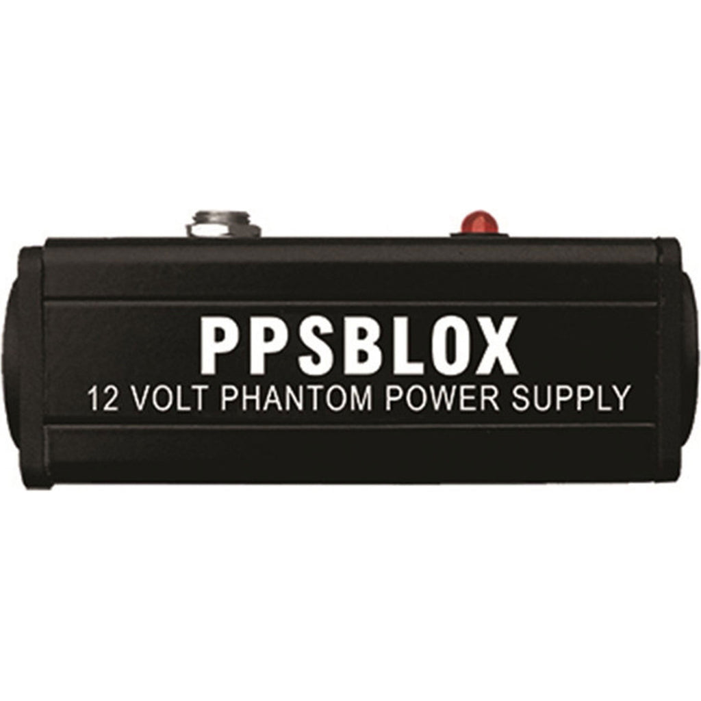 PPSBLOX is a phantom power supply. Single inline 12V phantom power supply. Provides up to 13.5vdc at either end and 100 ma of current. XLR female input and XLR male output. Power supply is included.