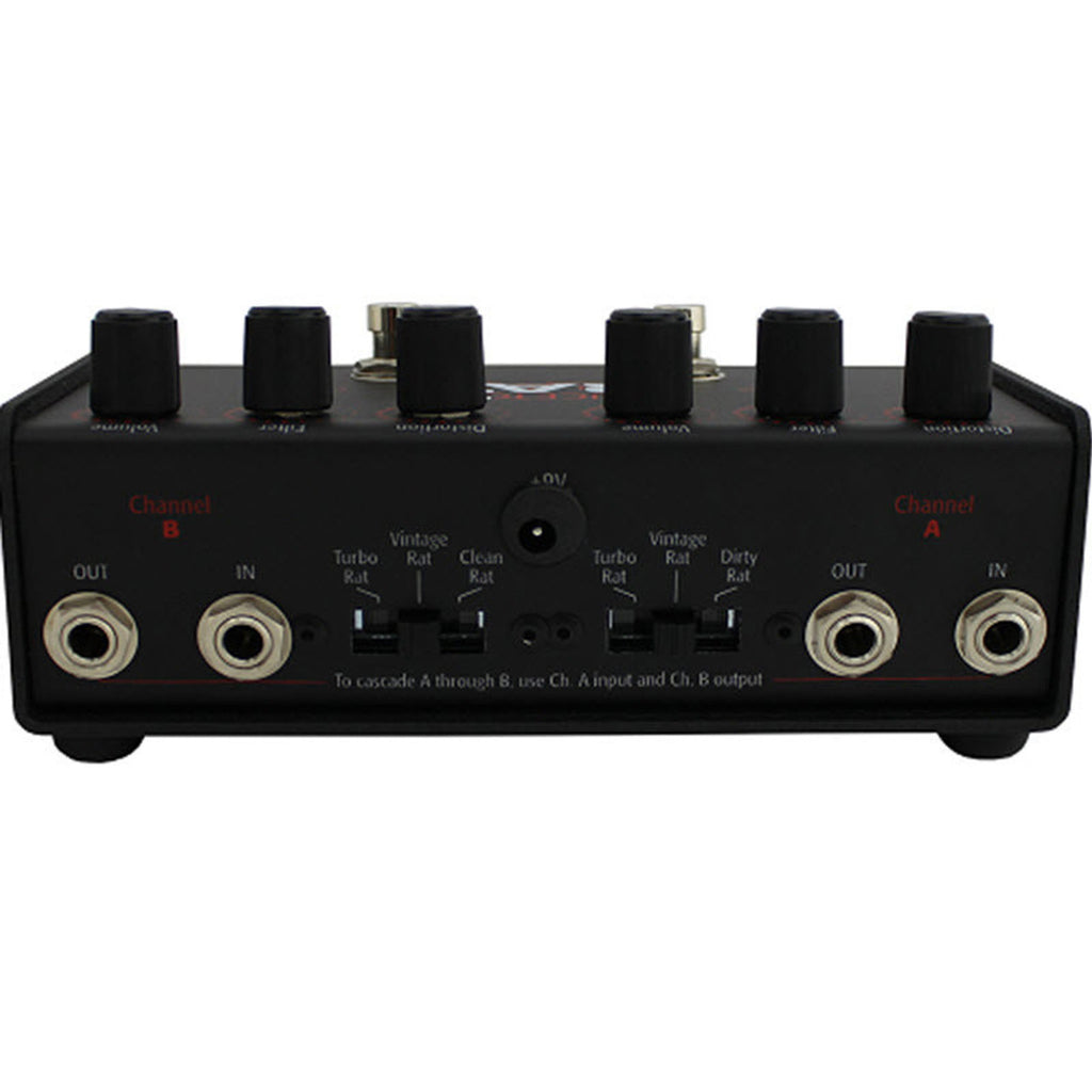 As if that weren't enough, each channel is switchable between three RAT settings. Channel A features the Vintage RAT, Turbo RAT, and Dirty RAT, while Channel B gives you the choice of Vintage RAT, Turbo RAT, or Clean RAT tones. The Clean RAT is a clean boost, a tone only available in the Deucetone RAT. That's like having six RAT pedals in one unit. Used separately or cascaded, you have fifteen RAT tones at your feet.