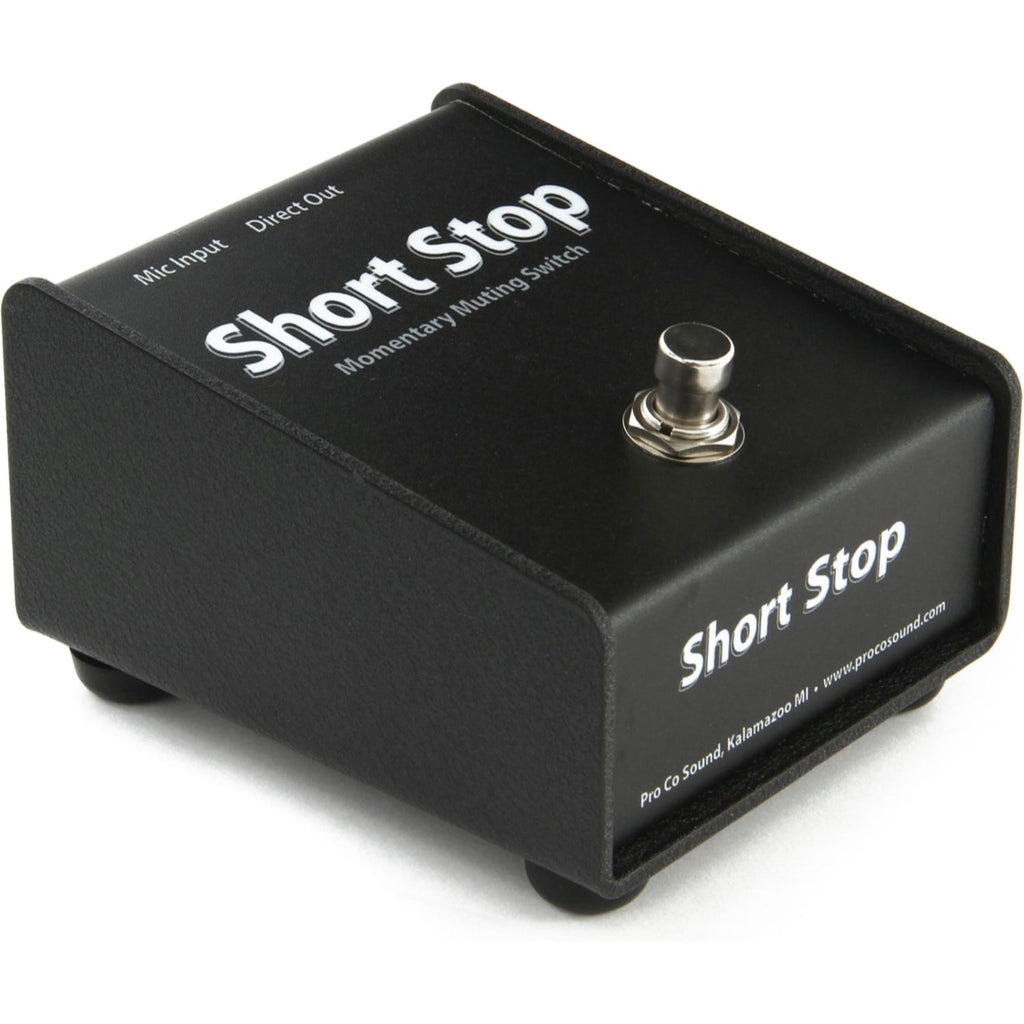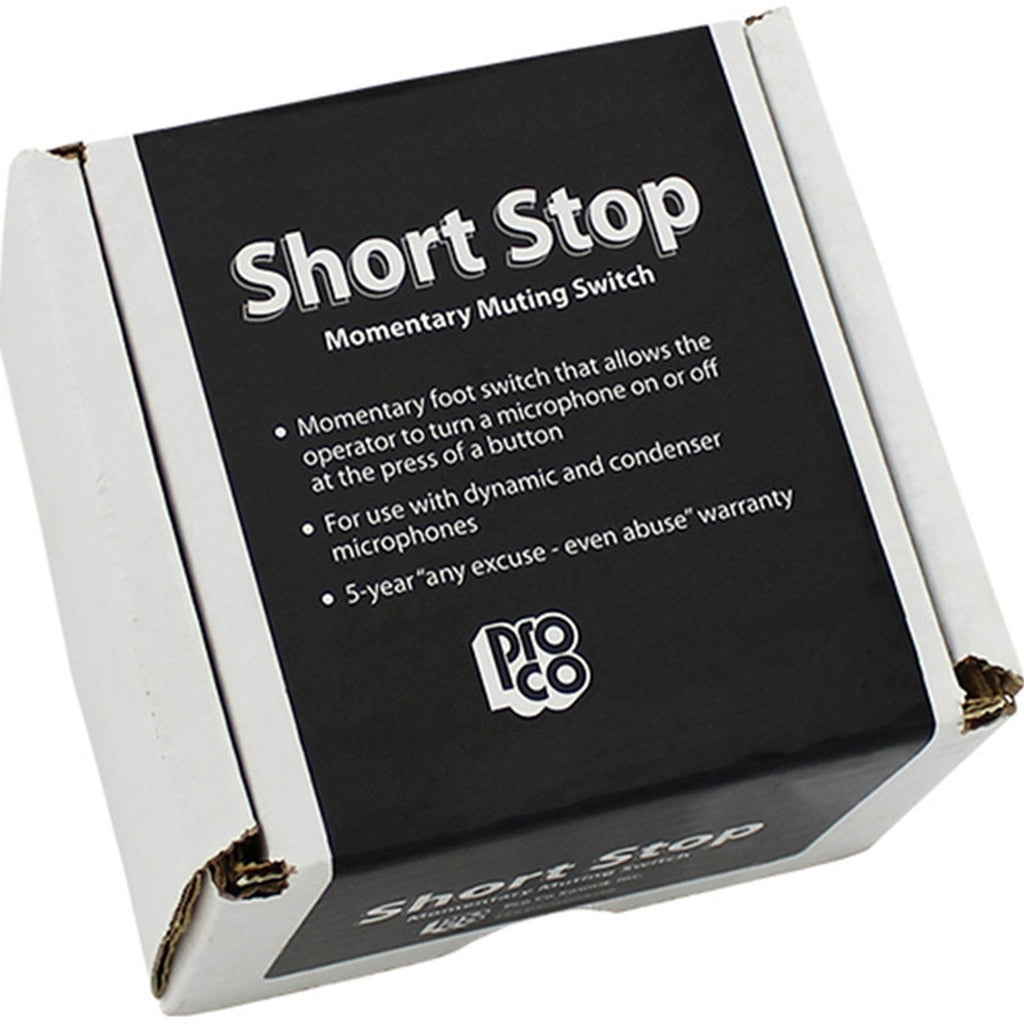 The ProCo Model CDSS "Short Stop" Momentary Microphone Muting Switch is a simple microphone signal muting device that offers clean reliable performance with any balanced or floating low-impedance (150 ohm nominal) microphone or signal source. The Short Stop is ideally suited for use in broadcast, disc jockey, sports announcing, boardroom, and live entertainment applications when the need to temporarily mute a microphone output is required.