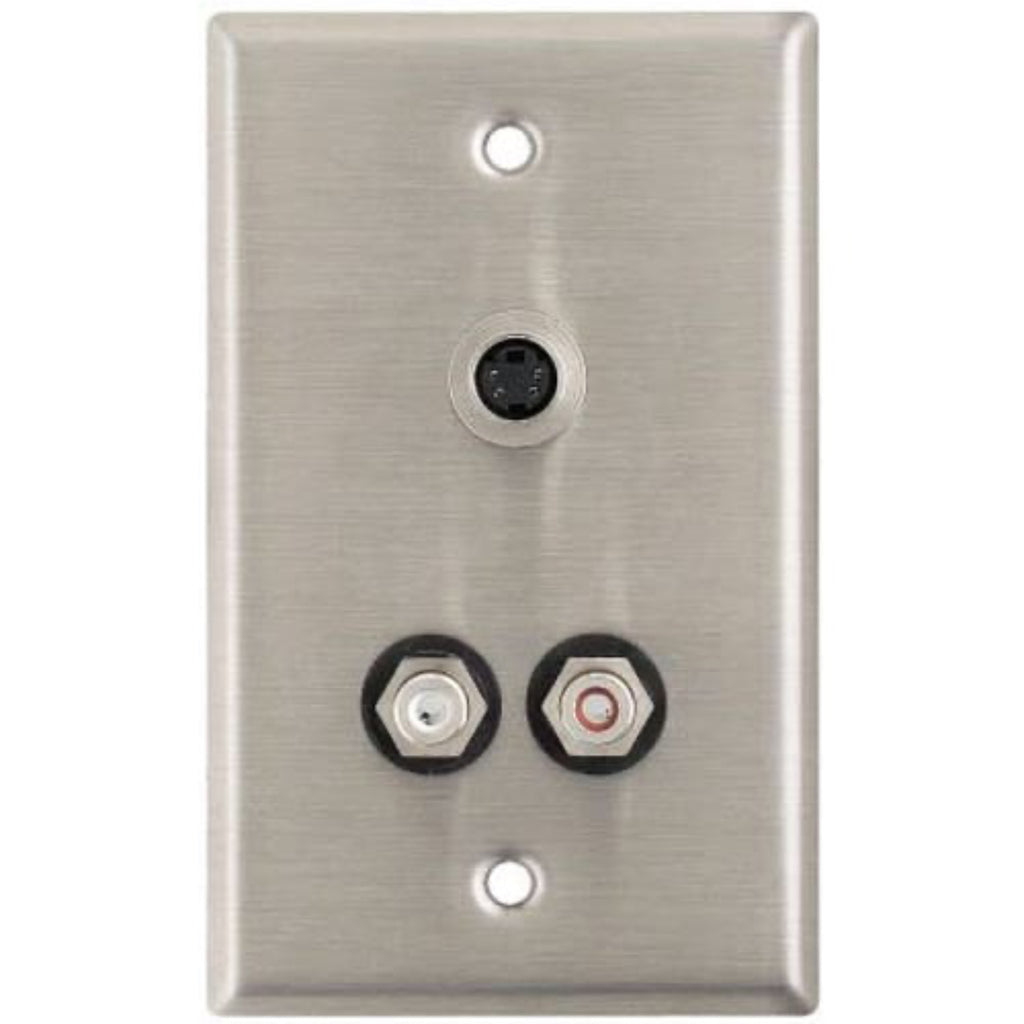 Wall Plate - 1 Gang - Single S-Video and Dual RCA Connectors - Stainless Steel
