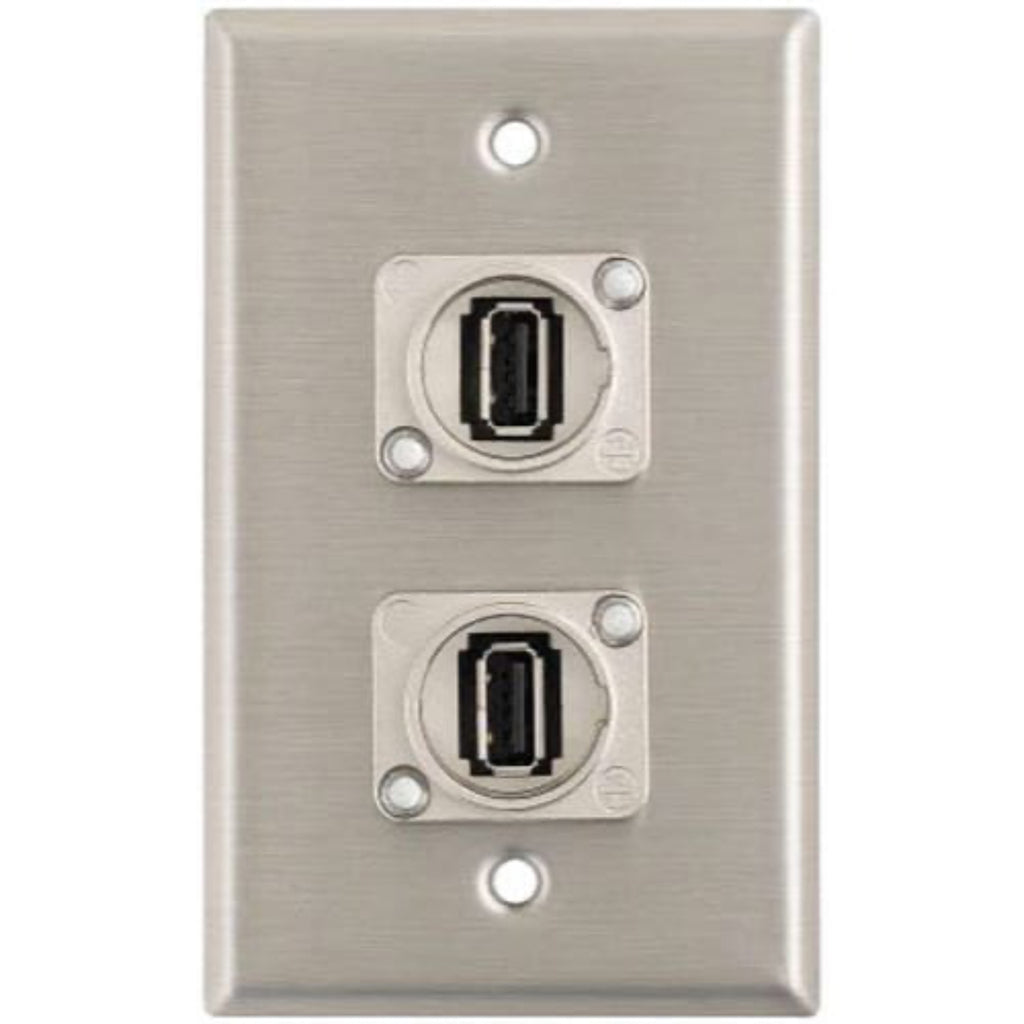 Wall Plate - 1 Gang - Dual USB Connectors - Stainless Steel