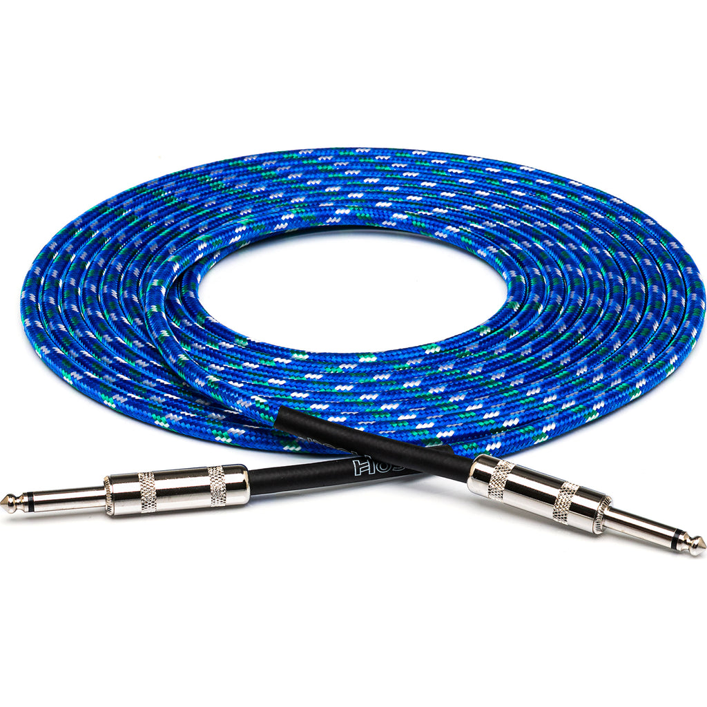 Cloth Guitar Cable, Hosa Straight to Same, 18 ft, Blue/Green/White