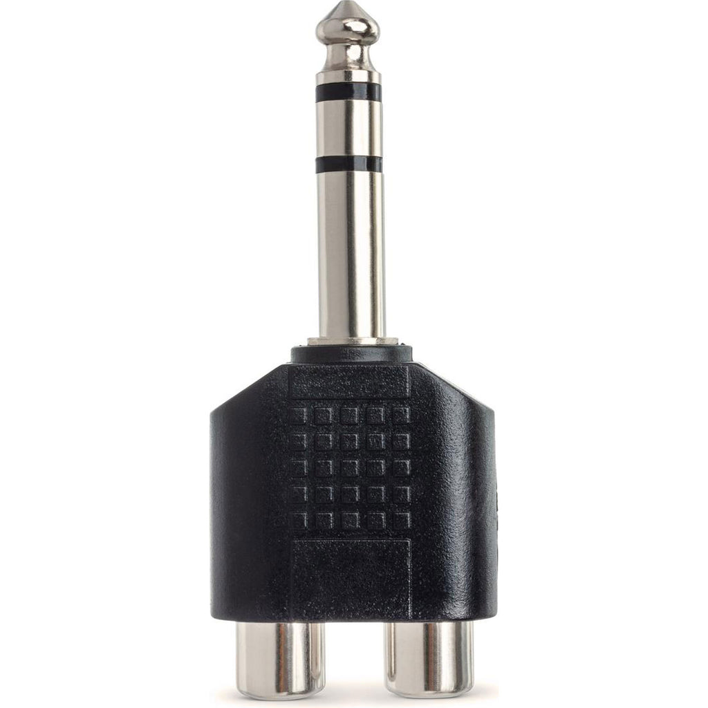 This adaptor is designed to adapt a stereo cable with phono plugs to a stereo phone jack.