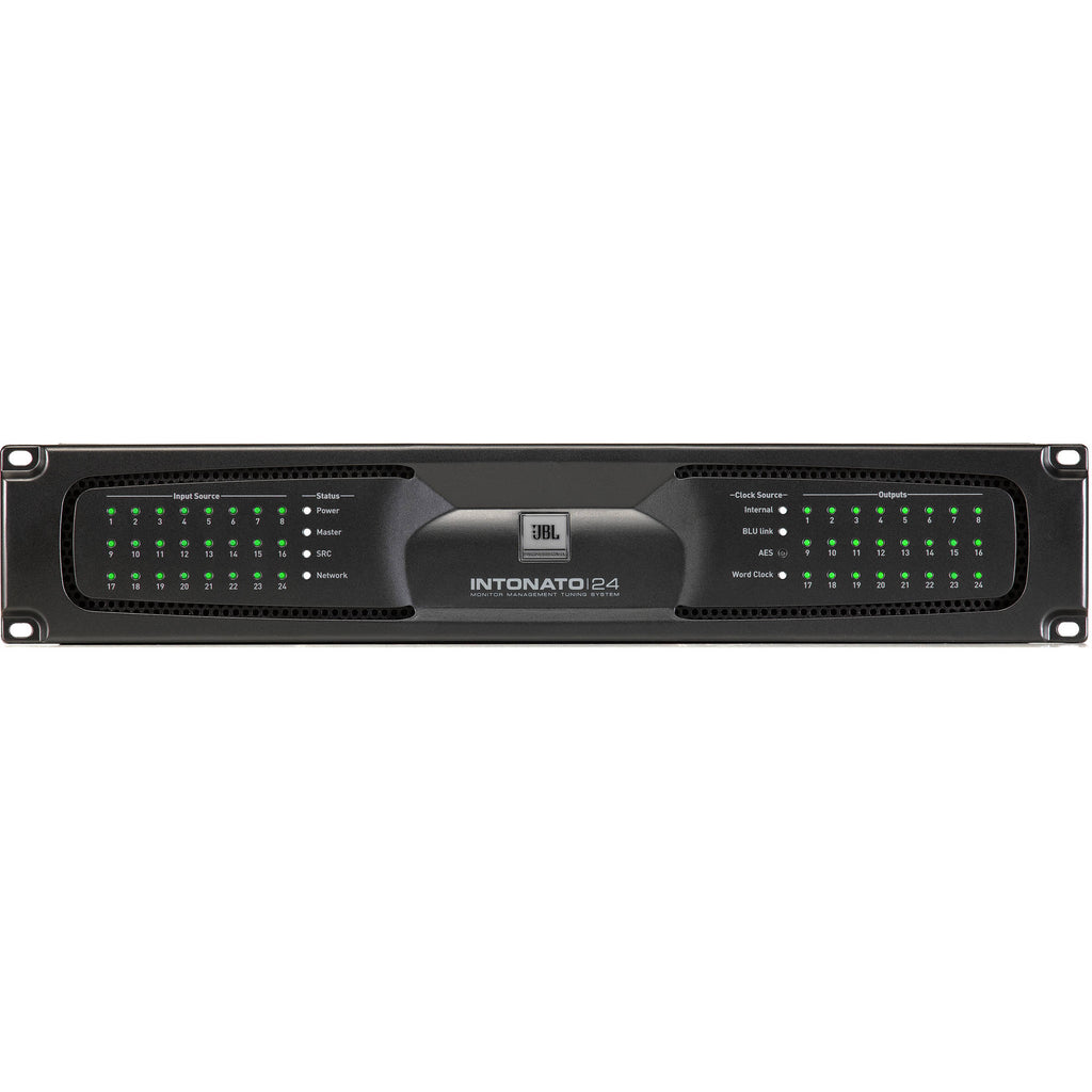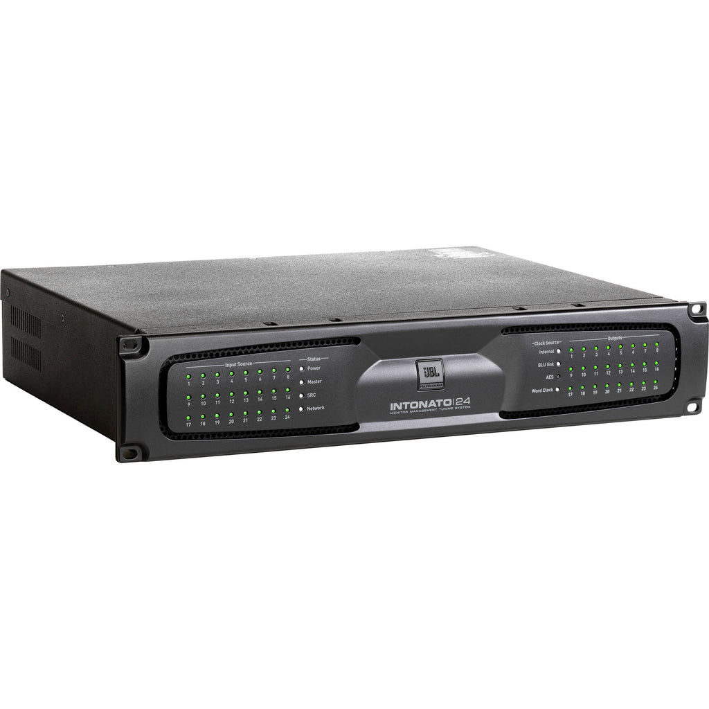 The JBL Intonato 24 Monitor Management Tuning System provides easy setup, automated calibration and comprehensive control of professional monitoring systems. Housed in a 2U rack-mount enclosure, Intonato 24 precisely calibrates and controls up to 24 speakers configured as stereo, surround or immersive audio systems. You can create and instantly recall customized routing of up to 24 analog, digital and networked audio sources. Included software and an optional Desktop Controller put the system's powerful monitoring features at your fingertips. Intonato 24 delivers the benefits of a precisely calibrated system, and takes control room monitoring to the next level. Intonato, from the Latin verb Intonare meaning "tuned," "matched," "in tune," describes a primary attribute of all speakers in the ideal control room monitoring environment.