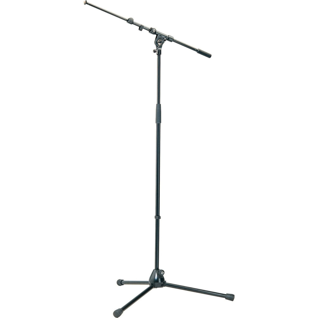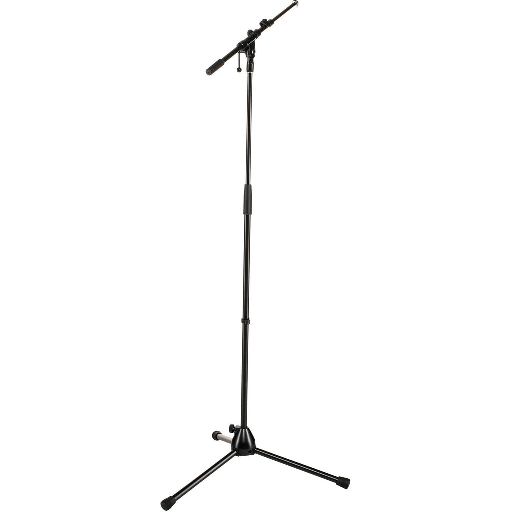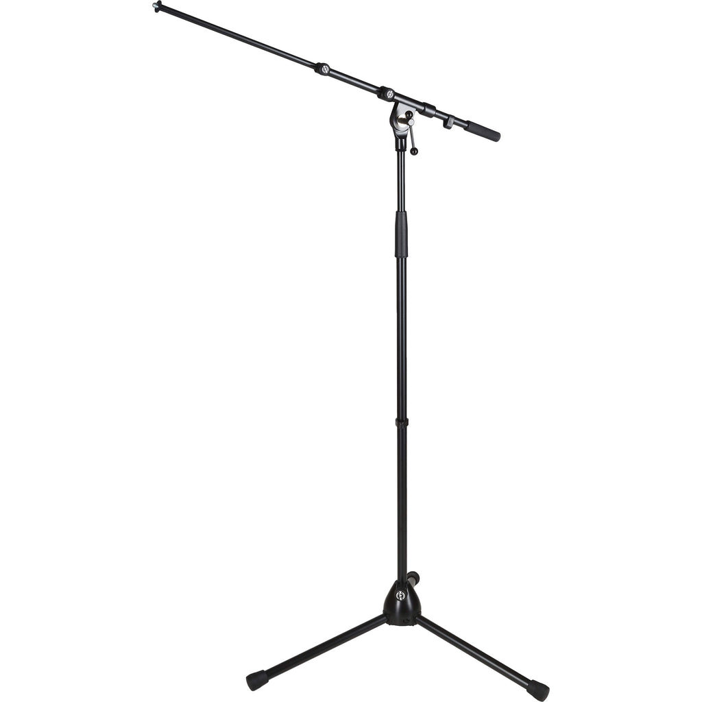 The professional-quality, heavy-duty black 210/9 Tripod Microphone Stand with Telescoping Boom from K&M is a height adjustable mic stand with a 17.1 to 29.3" telescoping boom arm. The 210/9 microphone stand offers sturdy support for live sound, theater, rehearsal, and recording applications. It features a clutch to allow you to raise the stand height from 35.4 to 63.2" and a standard 5/8" thread for mounting microphones.