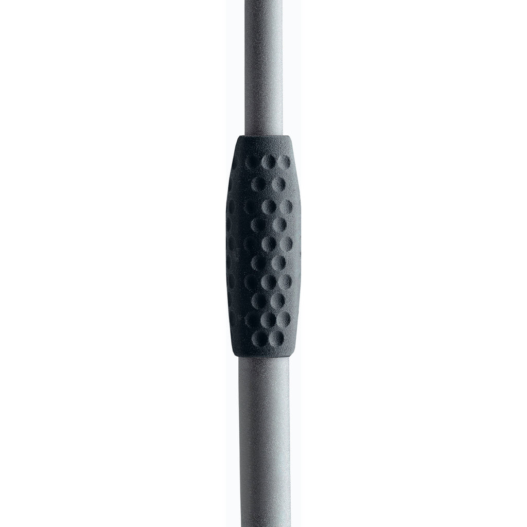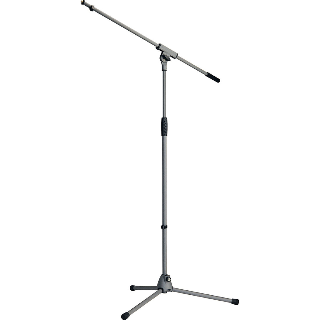 Consists of tubing assembly, boom arm and zinc die-cast base with long folding legs. Square swivel joint with large wing nut. Attractive gray Soft-Touch powder coating.
