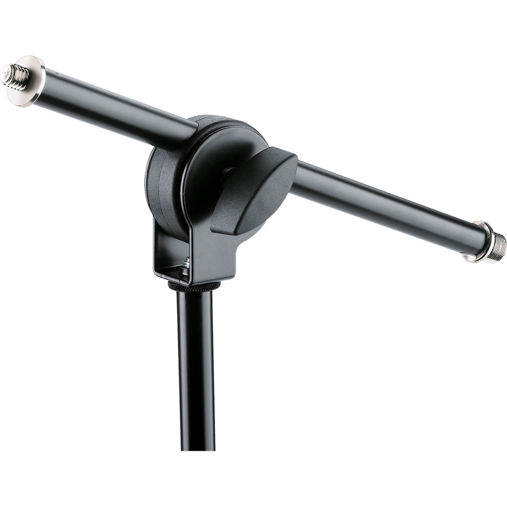 The K&M 21431 Mini Boom Arm is adjustable in length and attaches to microphone stands, providing added reach and overhead microphone positioning. The unique singe piece design is made of steel construction for maximum durability. The K&M 21431 Mini Boom Arm is an ideal choice for drum overhead microphones.