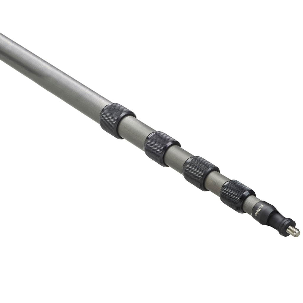 This KEG150 Avalon Graphite Boompole has a collapsed length of 3'2" | 97cm and an extended length of 12'5" | 378cm and only weighs 1.3 lbs | 602g. This 5-section Graphite Economy Boompole is uncabled. The top attachment is a 3/8" - 16 male thread and the bottom attachment is a Delrin Base.