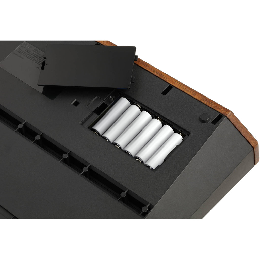 The Monologue has a set of factory tuning as well as 12 user slots for creating custom microtunings. Aphex Twin has come onboard as an advisor for the implementation and also to offer scales, sounds, and sequences as part of the factory presets. The enclosure is crafted from a curved aluminum panel, populated by chassis-mounted metal shaft pots with rubber-coated knobs, and a solid pyinkado-wood rear panel. Programming is a breeze with a single-knob-per-function architecture that satisfies seasoned synth professionals and beginner programmers. The Monologue ships with six AA batteries and can be powered by an optional 9 VDC power supply.