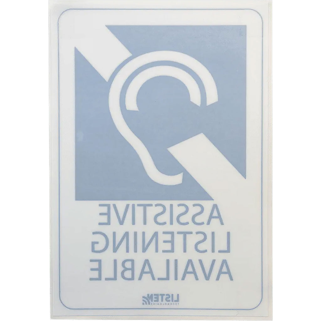 The LA-304 Assistive Listening Notification Signage Kit helps you achieve compliance with assistive listening regulations while also ensuring that visitors know about your system's availability. Each kit includes one (1) clearly printed plaque and one (1) window sticker, each of which is easily mounted in a convenient and highly visible location in your venue.