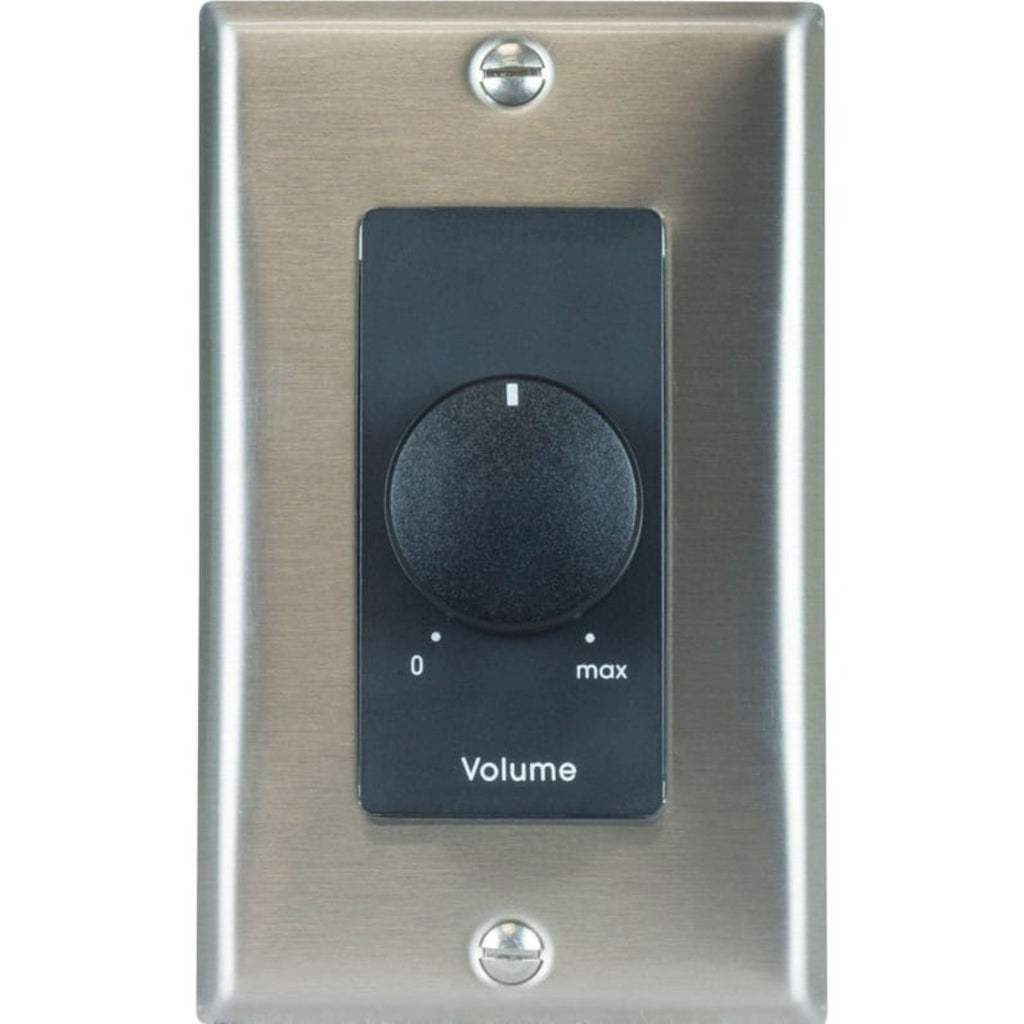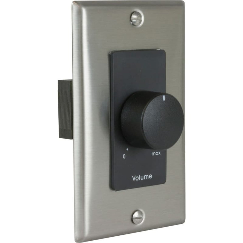 25 Watt Volume Control with Rotary Switch and One-Gang Wall Plate - Decora Stainless Steel & Black