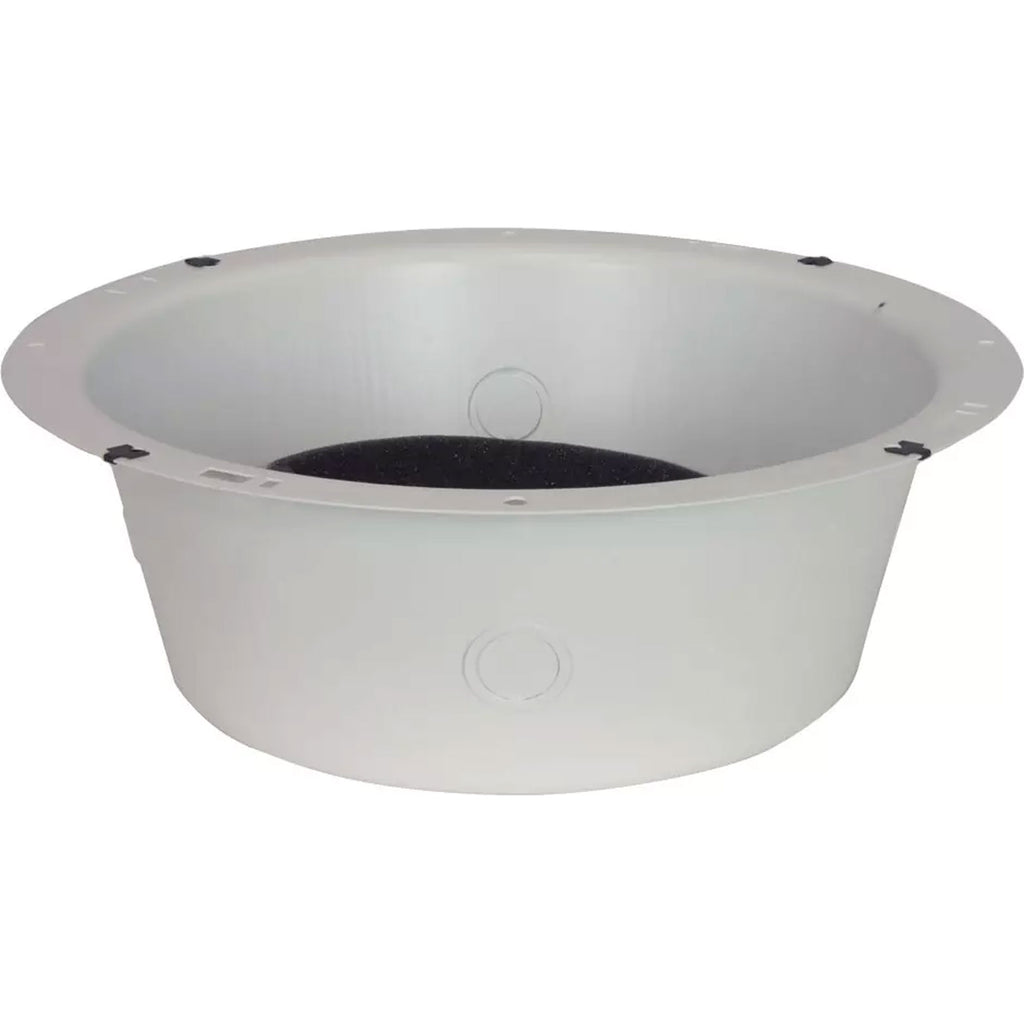 Lowell's conically shaped 8XD4 Series backboxes are engineered to accommodate an 8" speaker in either new or existing construction. The slightly tapered, conical shape allows these backboxes to be stacked for space efficient storage and transit. Popular series mounts a wide selection of Lowell grilles and mounting accessories (see page 2). Series 8XD4 backboxes are certified US steel construction (22-gauge) with a white powder coat epoxy finish and include a polyurethane foam disc. The disc meets UL flammability CAL-117 and is affixed to the bottom inside surface to reduce acoustic and mechanical resonance. Models are furnished with factory installed 8-32 screw retaining clips for grille mounting.