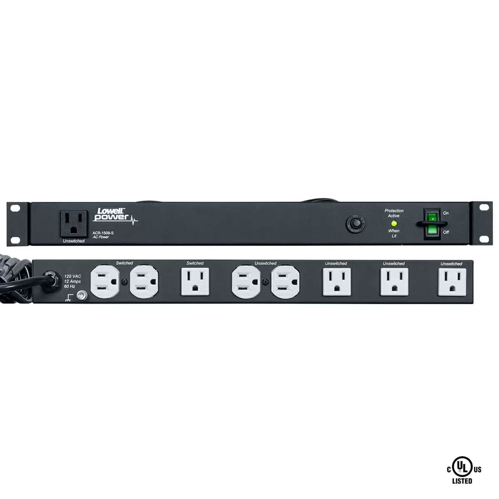 Variety of 19" rackmount panels with (15A) AC power outlets and op- tions for different levels of surge protection or over/under voltage pro- tection let you select exactly what's needed to support the equipment specified for each project, while staying within budgetary guidelines. All units are ETL Listed in the US and Canada (to UL Standard 60065) and are made in the USA with domestic and foreign parts. All models include: