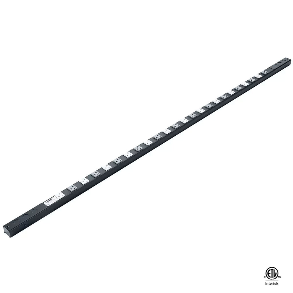 - 15A or 20A two-circuit power strip with 12 outlets per circuit (24 outlets per strip).