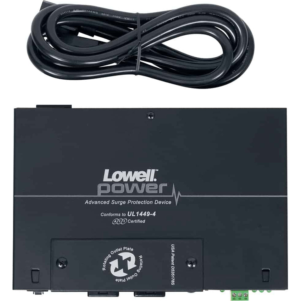 This advanced surge suppressor provides the highest current ca- pacity available in devices of its size to protect multiple pieces of sensitive electronic equipment on a single circuit. It features in- dustrial strength "zero failure" technology backed by a ten year warranty. It also includes a patented* rotating outlet plate that makes it easy to change the position of the outlets from top to side access. The compact body has a very low profile (1.75"H x 6"D x 9"W) and includes two mounting brackets made for easy installa- tion - on a wall behind a flat panel TV, under a counter, in a rack or just about anywhere. Both models have two 15A outlets and a detachable cord.