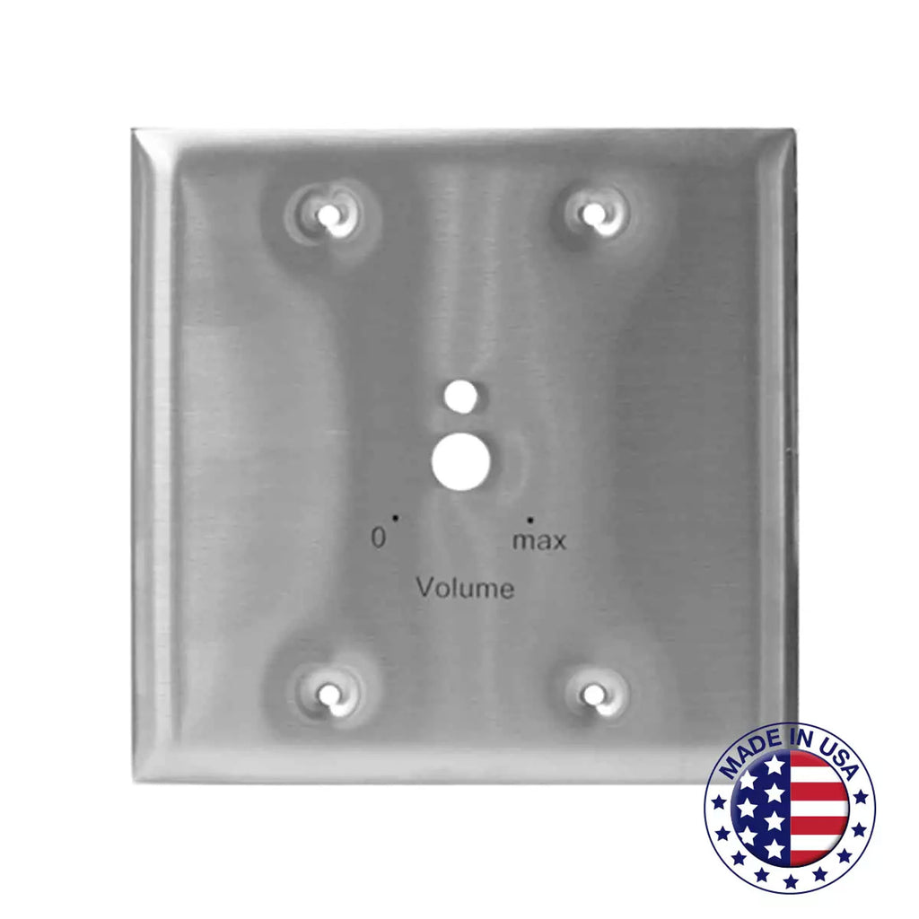 Two-Gang Stainless Steel Wall Plate with Single Hole Punch for an Attenuator (Not Included)