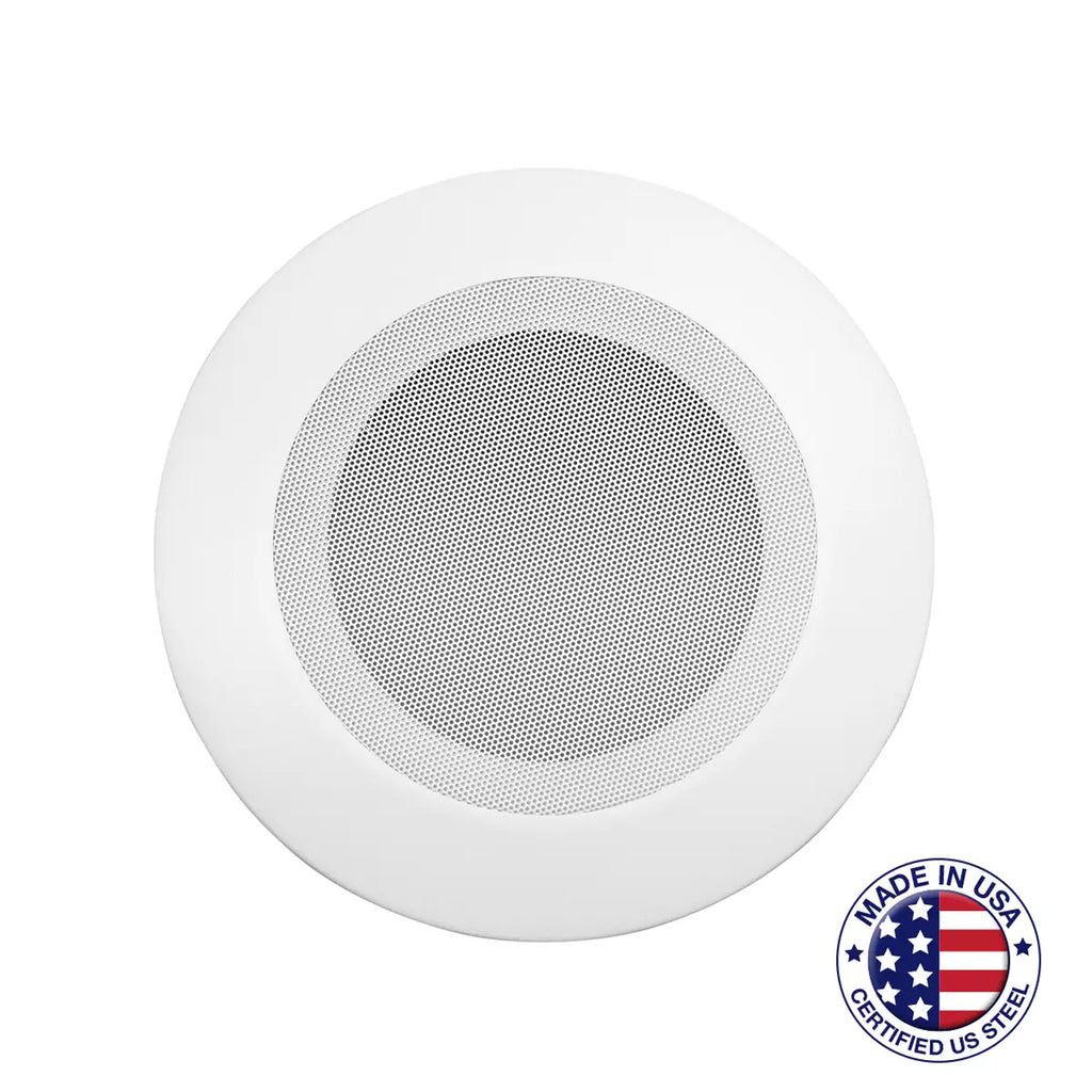 Lowell grille Model CN-8M is an attractive ceiling grille that satisfies architectural specifications requiring ceiling speakers to be void of visible mounting hardware. This grille has a contoured outer ring and fine-mesh interior. It utilizes concealed speaker studs and specially designed torsion devices to mount into torsion receptacles that are welded in specified Lowell backboxes (order separately). The grille is ideal for 8" or 6.5" speaker installations in upscale offices, hotels, retail, professional buildings, and dining establishments.
