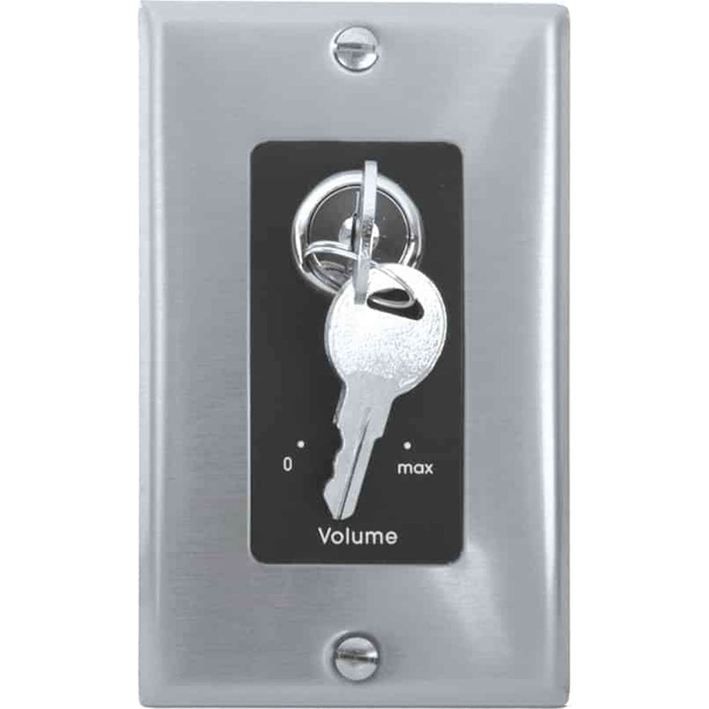 100W volume control with key switch and one-gang wall plate. Patented design secures volume settings for critical paging and emergency systems. For single or multiple speaker lines. Includes priority relay for emergency bypass.