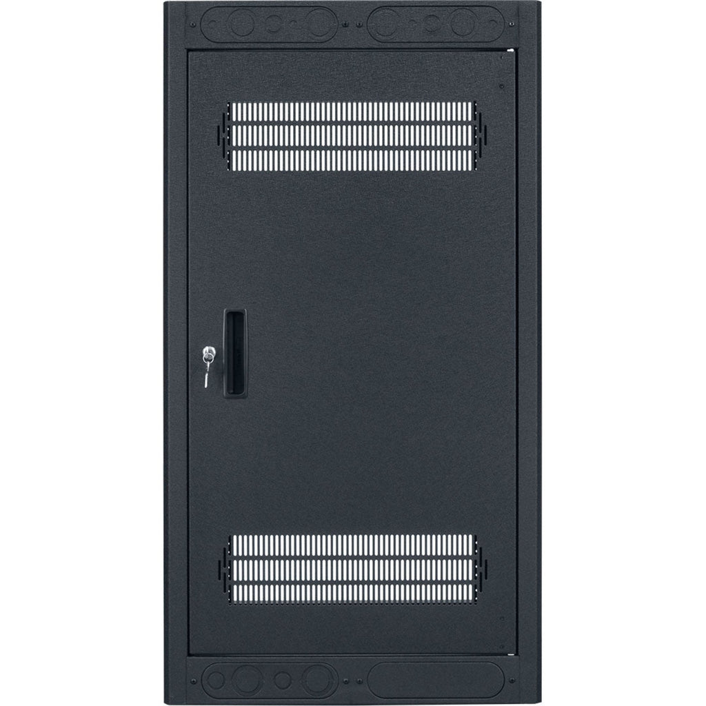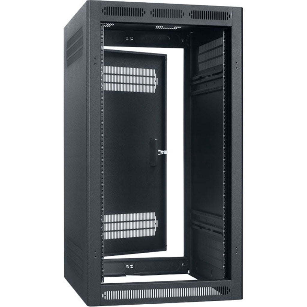 Enclosed Rack - adj. rails (LER-series): 19" EIA rack features adjustable mounting rails, fixed sides and rear door. Sides and door are vented top and bottom. Optional front door can be ordered separately. All-welded construction with 100% certified U.S. steel. UL Listed for loads up to 3150 lbs. (1429 kg). Beveled edges on four corners, black wrinkle powder epoxy finish.