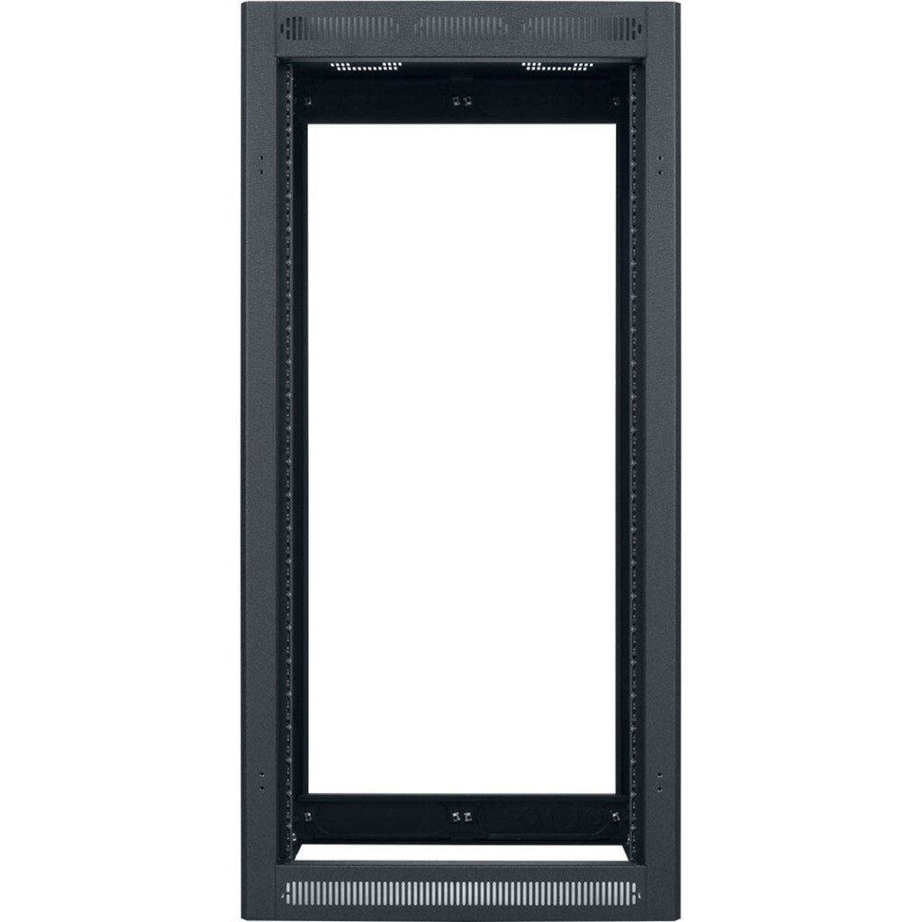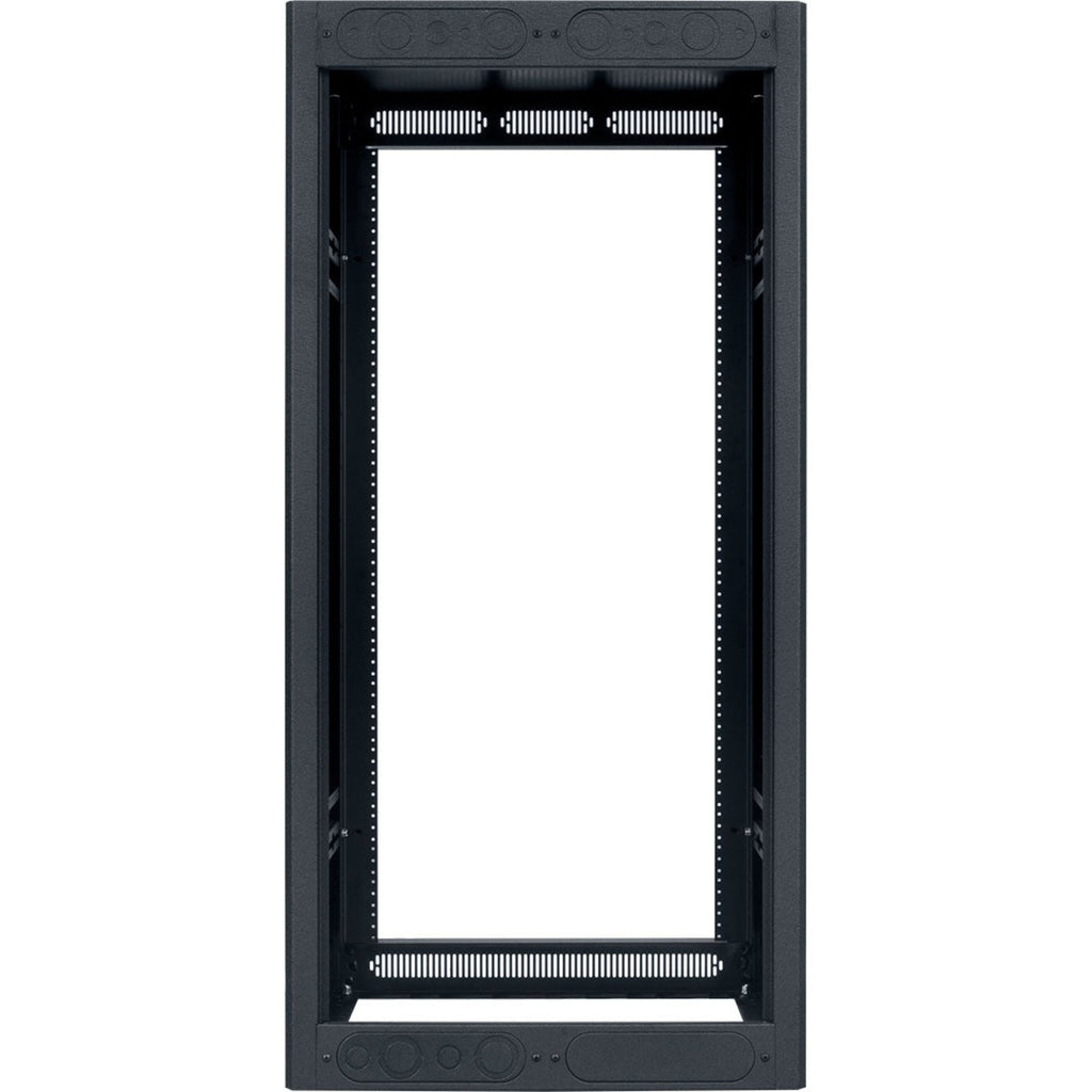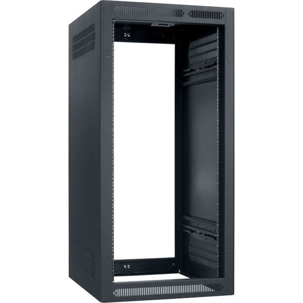 Enclosed Rack - adj. rails (LER-series): 19" EIA rack features adjustable mounting rails, fixed sides and rear door. Sides and door are vented top and bottom. Optional front door can be ordered separately. All-welded construction with 100% certified U.S. steel. UL Listed for loads up to 3150 lbs. (1429 kg). Beveled edges on four corners, black wrinkle powder epoxy finish.