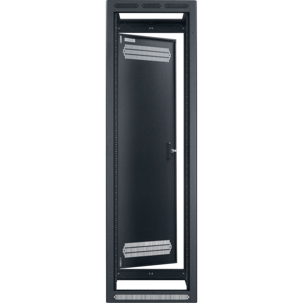 Enclosed Rack - adj. rails (LER-series): 19" EIA rack features adjustable mounting rails, fixed sides and rear door. Sides and door are vented top and bottom. Optional front door can be ordered separately. All-welded construction with 100% certified U.S. steel. UL Listed for loads up to 3150 lbs. (1429 kg). Beveled edges on four corners, black wrinkle powder epoxy finish.