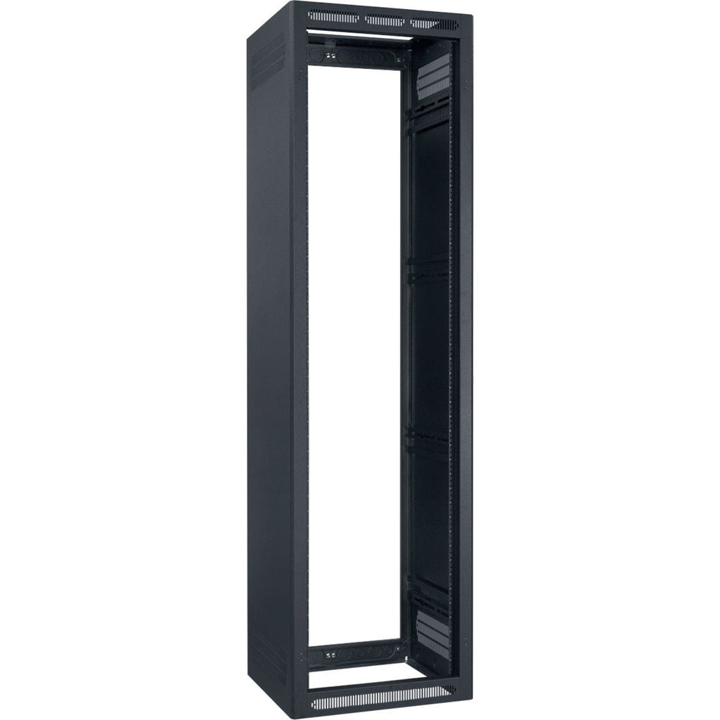 Enclosed Rack - adj. rails (LER-series): 19" EIA rack features adjustable mounting rails, fixed sides and rear door. Sides and door are vented top and bottom. Optional front door can be ordered separately. All-welded construction with 100% certified U.S. steel. UL Listed for loads up to 3150 lbs. (1429 kg). Beveled edges on four corners, black wrinkle powder epoxy finish.
