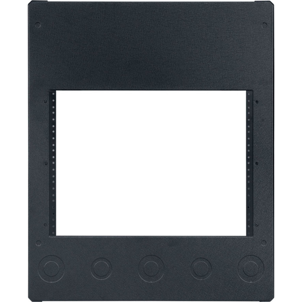 Ganging Rack (LGR-series): 19" EIA rack can be linked together, features open sides to facilitate access to wires and cable bundles. All-welded construction adds strength and durability. Load-tested to 3500 lbs. Plentiful, pre-drilled holes for wire looming, beveled edges on 4 corners, black wrinkle powder epoxy finish.