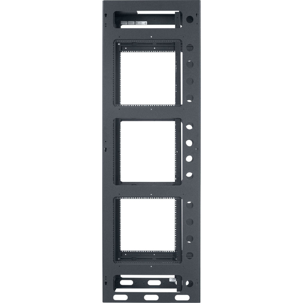 • Rear: rack includes recessed, locking rear door that's vented at top and bottom. Removable knockout panels above and below