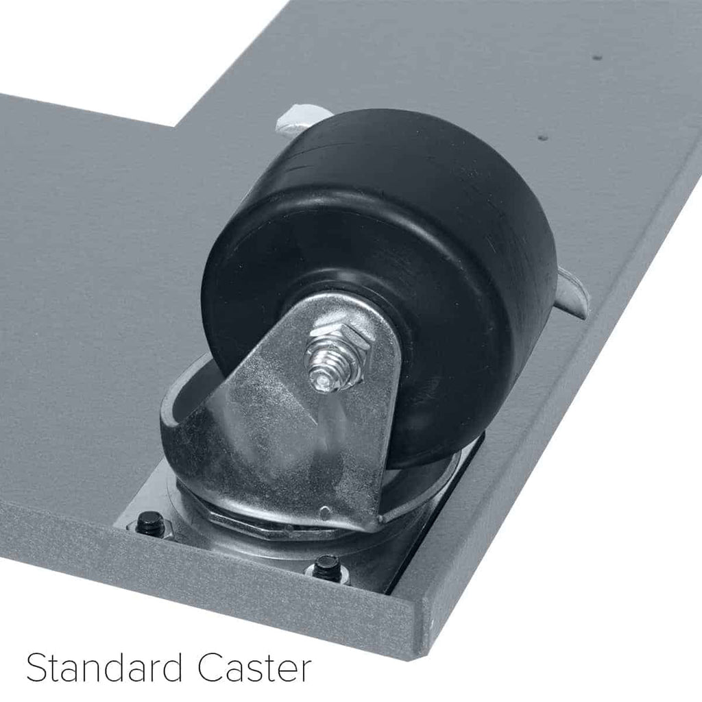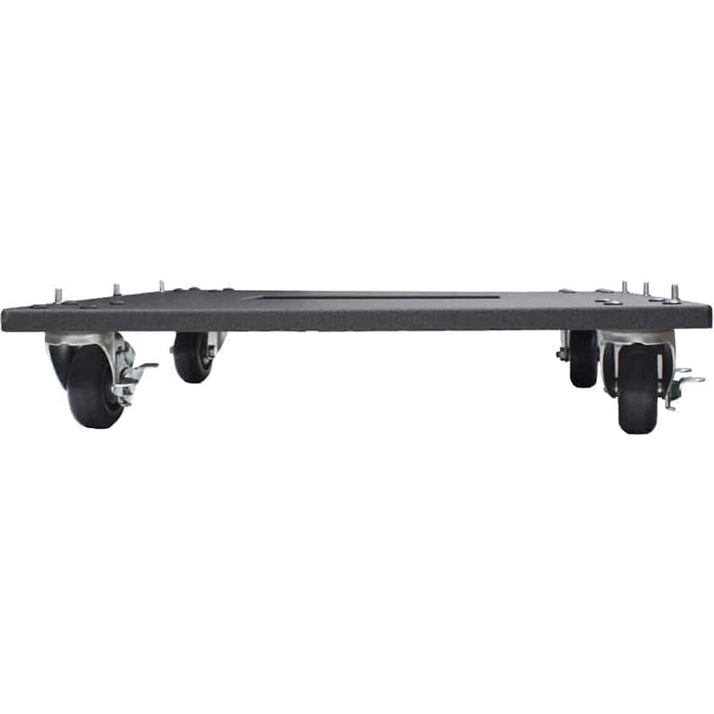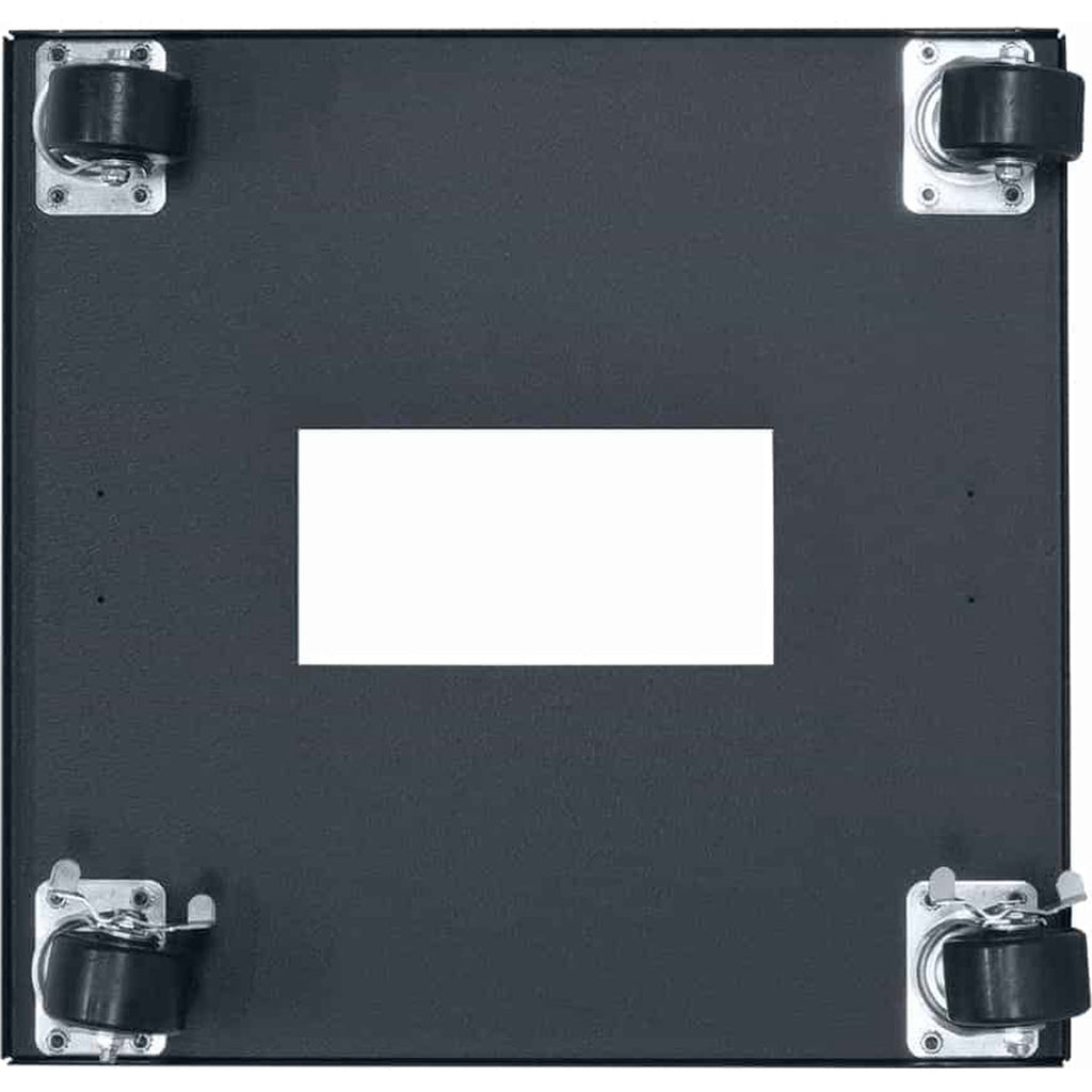 LMSB-series: Mobile Shallow Base mounts under rack frame, adds 4.06" to rack height. Includes 2 non-locking (3") swivel casters and 2 locking (3") swivel casters with 350 lbs. load capacity each.