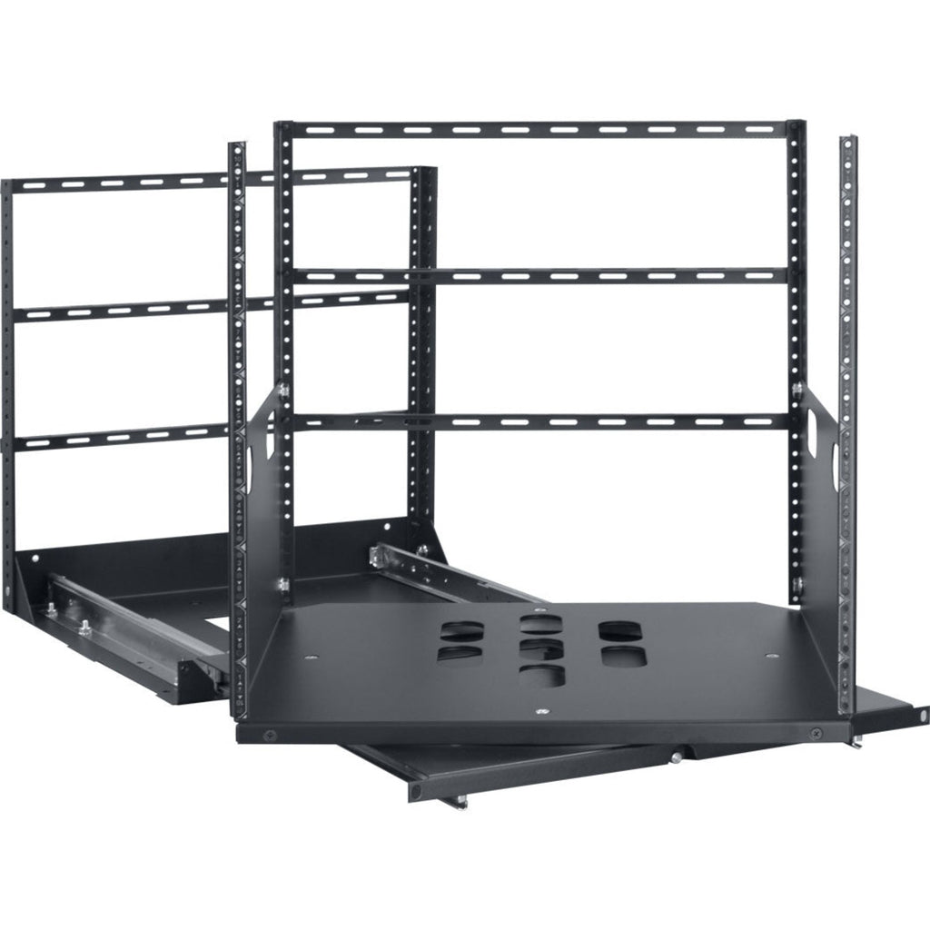 - Ships in 2 cartons for efficiency: CARTON ONE includes base with integral turntable, 2 rear corner-post rails, 3 cable lacing bars. CARTON TWO contains rack bottom, 4 corner-post rails, 2 side stiffeners, front security panel, 3 lacing bars.
