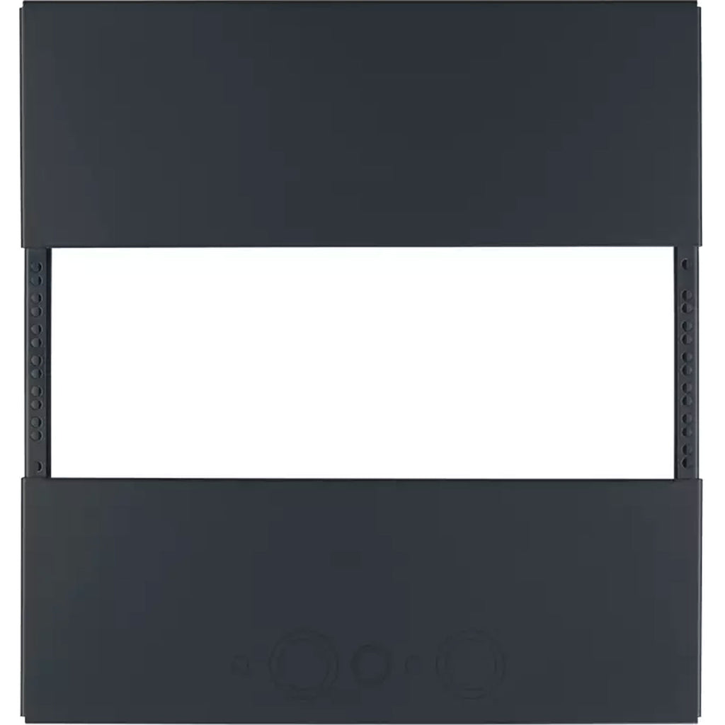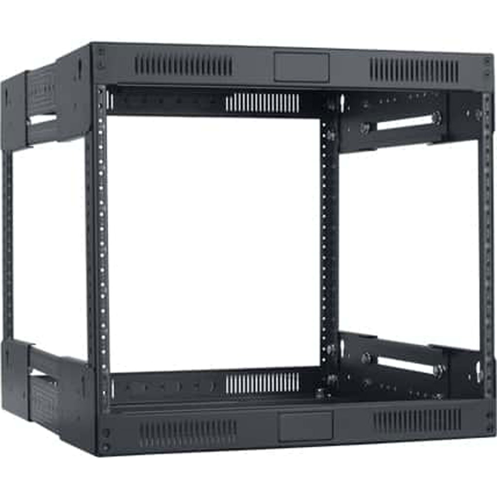 VARI-RACK variable depth rack (LVR-series): 19" EIA rack with thin-flange frame and variable depth is ideal for built-in applications but also suitable as a floor rack. Corner post mounting rails can be field-cut for a custom fit inside cabinets. Rails have printed cut-marks to assist accurate cutting if height needs to be shortened. When set to maximum-depth, open areas in top and base will accept (optional) fan panels. Load capacity: 400 lbs. Black powder epoxy finish. Unassembled.