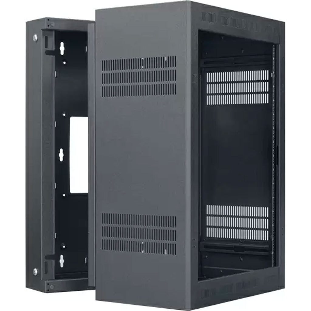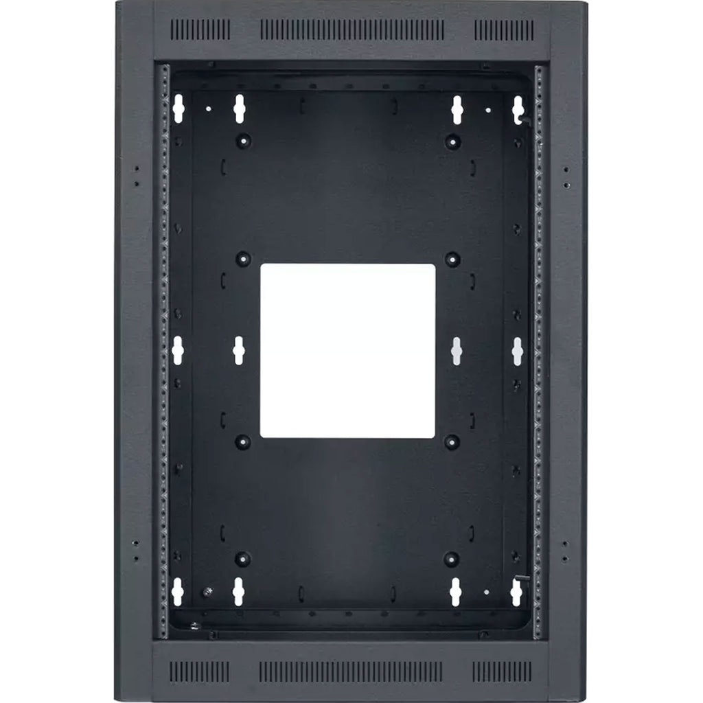 - Backbox: The 5.81"D box has 16" mounting centers, a 10"x10" opening to mount over electrical pull boxes, and embossed dimples on the back plane for installation of board-mounted accessories. It features removable knockout panels at top and bottom and two keyed locks on one side (keyed differently than optional front door).