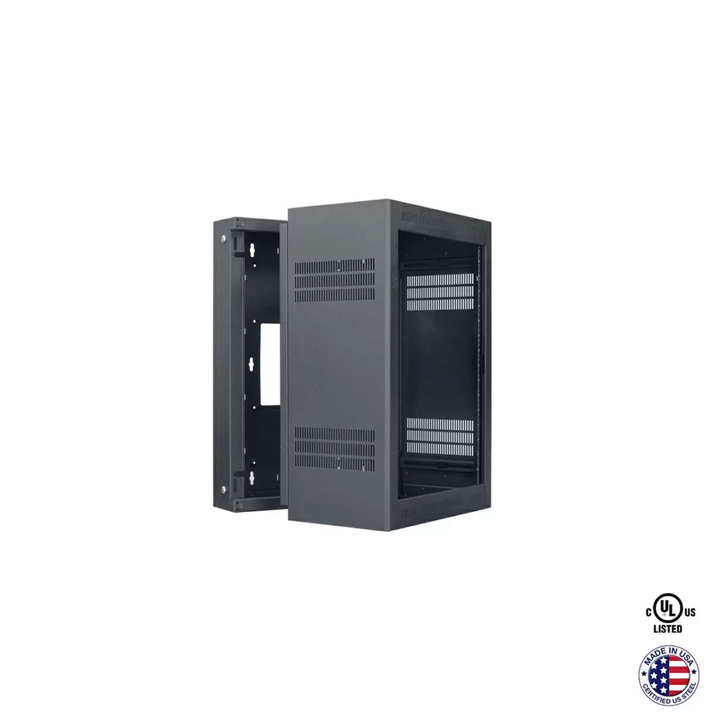 The E.I.A. compliant, UL Listed (Standard 1678) sectional wall-mount rack consists of a sturdy steel backbox and mounting section that are boxed separately for convenience-the backbox can be fieldinstalled while the mounting section is loaded with equipment at the shop. Made in U.S.A. with 100% certified U.S. steel. Includes PilotPointTM screws with 5.1 hardness and captive washers (order RSPseries for extra hardware).