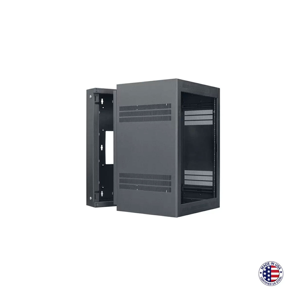 16RU Sectional Wall-Mount Rack, 28" Deep, 1 Pair Adjustable Rails, Black