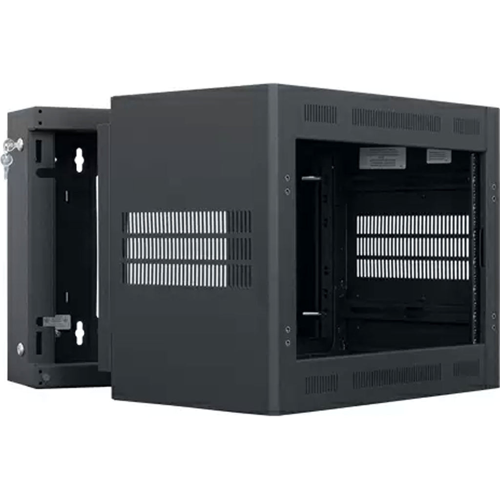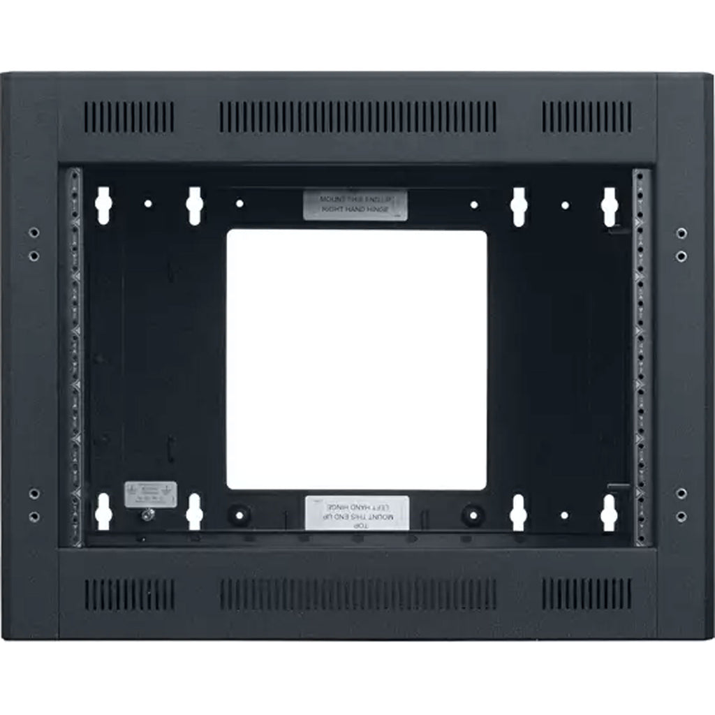 - Backbox: The 5.81"D box has 16" mounting centers, a 10"x10" opening to mount over electrical pull boxes, and embossed dimples on the back plane for installation of board-mounted accessories. It features removable knockout panels at top and bottom and two keyed locks on one side (keyed differently than optional front door).