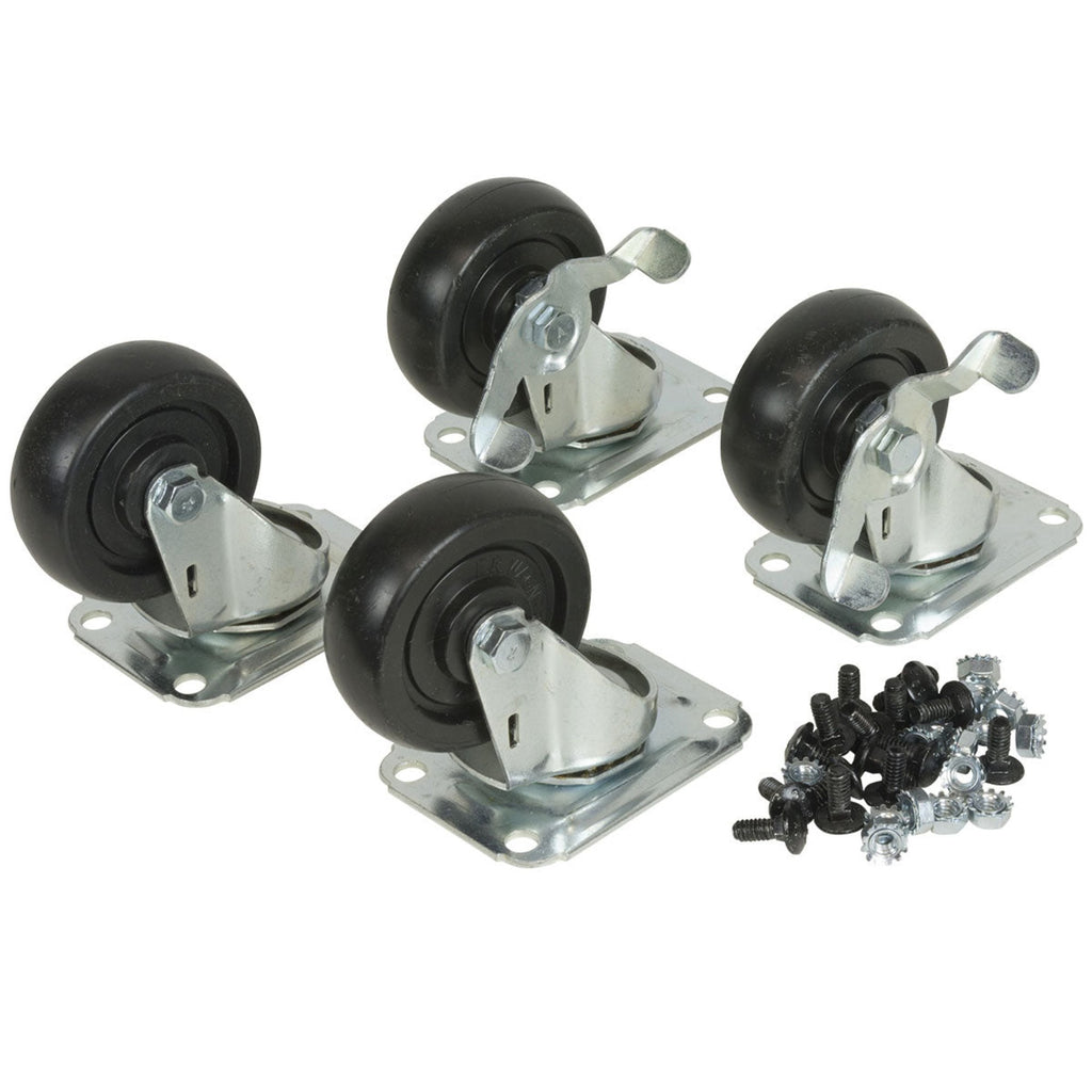 Swivel casters (LXR-C3S series) are available as a set of four swivel, or two swivel/ two swivel-locking. Swivel Casters for fine-floors (LXR-C3SF series) have a special formula rubber tread that won't mar floors while the tough polyolefin core helps absorb shocks. Available as a set of four swivel, or two swivel/two swivel-locking.