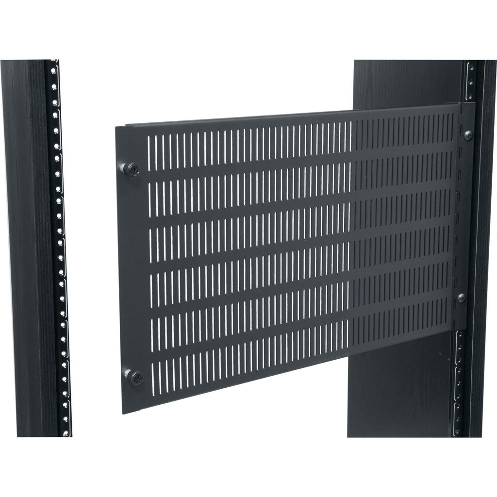The hinged access panel provides quick passage to rack interiors. Solid and vented panels available. Fabricated from easily machinable 13-gauge black powder coated steel, this access panel is perfect for those situations where access to the rear of connector panels is required. Captive 10-32 threaded thumbscrews require no tools to open and will not get lost.