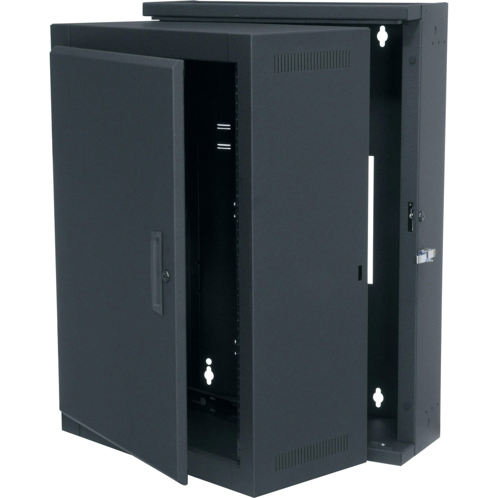 16 Space (28") Sectional Wall Rack with Solid Front Door, Fits 15" Deep Equipment, Black Finish