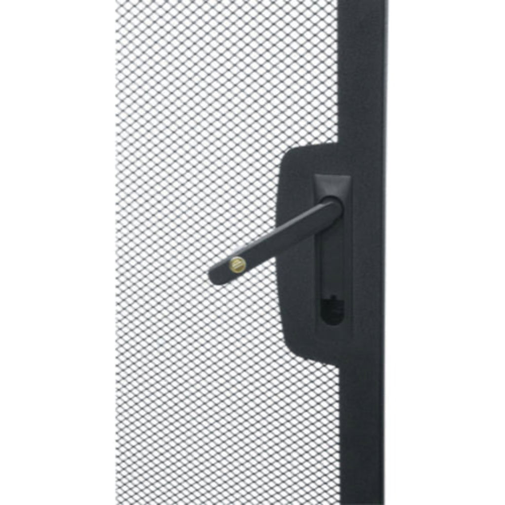 The door is constructed from steel and features a black textured powder-coat finish. -