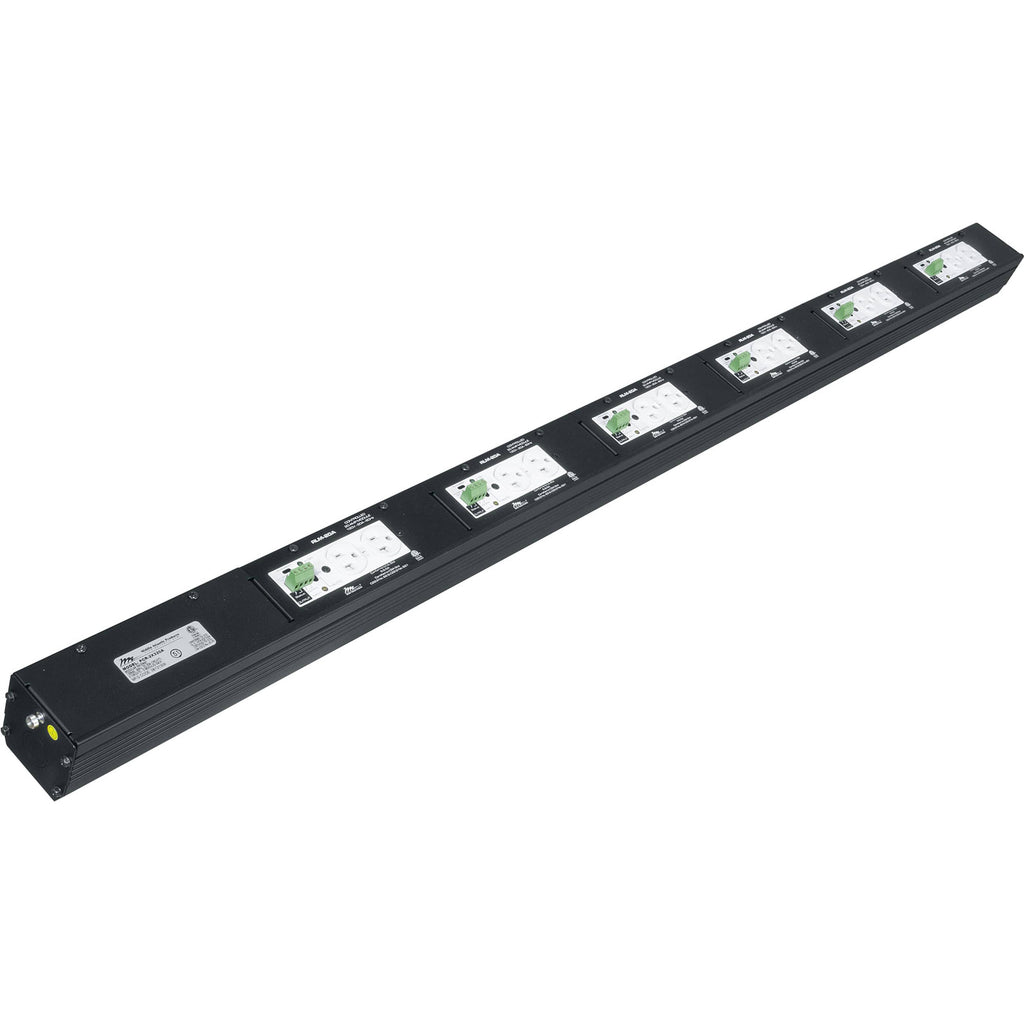Designed to save installation time, the factory-assembled MPR raceways utilize six power modules. These twelve outlet vertical strips connect to one or two 20 Amp circuits* and feed six 20 Amp duplexes (12 outlets). Each duplex can be independently controlled with the USC-6R Universal Sequencing Controller, or with any other sequencing controller that provides a maintained switch closure output. The PCR Series pre-configured raceways are 56" long, terminate in an integral junction box, are manufactured using 18-gauge steel and feature a durable black powder coat finish.