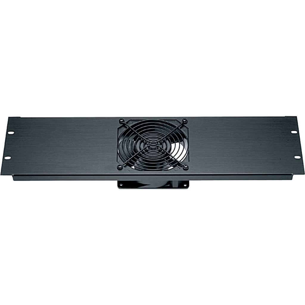 Occupying three rackspaces, these fan panel assemblies provide quiet cooling for demanding environments. Each assembly comes complete with fan and grille installed. Available in a black textured powder coat finish; cord and plug included.