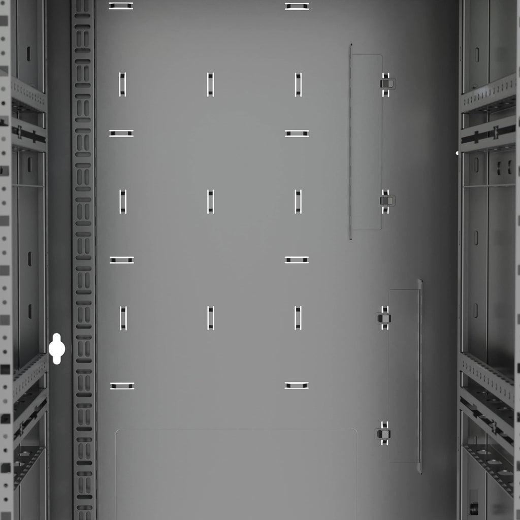 This rack offers unsurpassed cable management features. Abundant, built-in cable lacing points and touch-fastener tie points allow you to organize any quantity of cables. And numerous knockouts on the top, bottom, and back offer numerous pass through points for cabling. The top and bottom of the rack includes 1/2", 3/4", 1", 1-1/2", 2" and 3" electrical knockouts and a 5/8" knockout for UHF/VHF antenna. The backpan features a 12-1/2" x 12-1/2" laser knockout opening for an electrical pull-box. Laser knockouts in the top and bottom of the center section accommodate two (2) 4-1/2" fans and up to (2) low-voltage Decora devices.