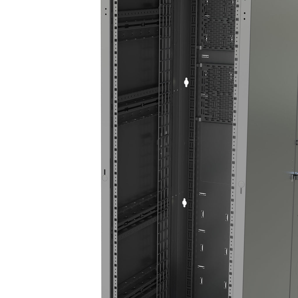 Rack rails are labeled in EIA standard rack space increments allowing for easy equipment alignment. -